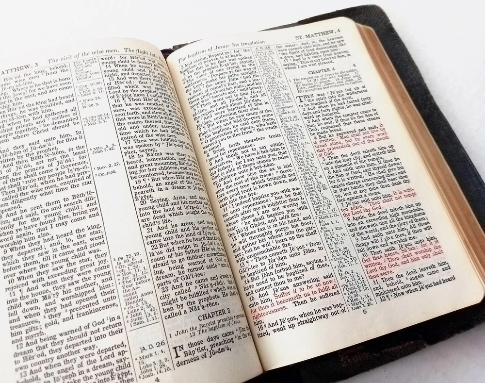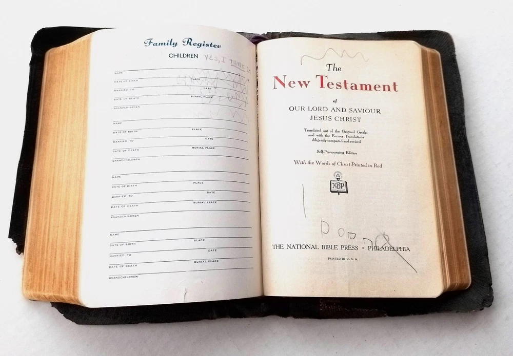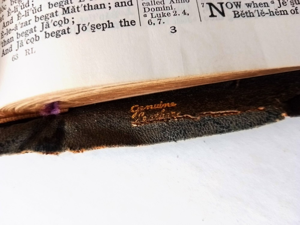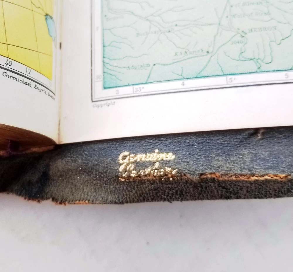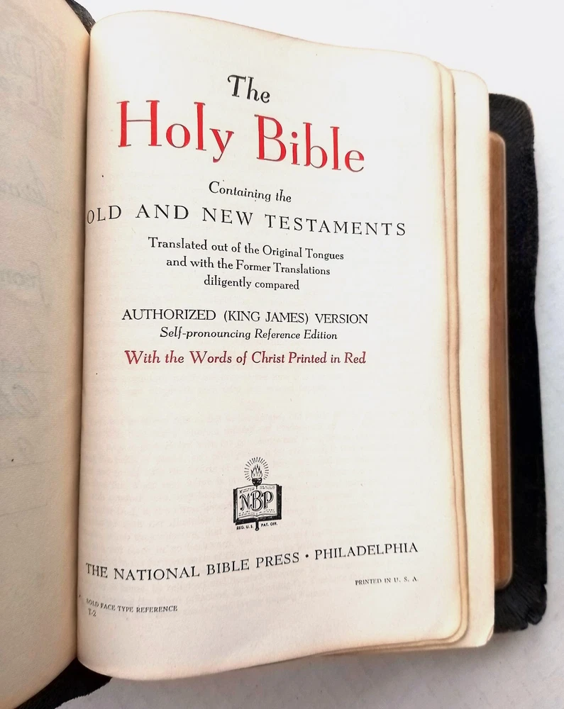 King James Version Holy Bible Self-Pronouncing Reference Edition Red Letter Genuine Leather Gilt page edges Concordance & Maps Published By National Bible Press 8 x 5.5” Genuine Leather Softcover Vintage condition. Unmarked publish date, but it seems like this Bible might be a hundred years old. It shows quite a bit of wear due to its age. Most noticeably, it has tears all around the edges of the Bible, with some of the outer edges actually torn off, as shown in photos. Binding is good, intact. Clean, neat pages. 4 pages have been found with writing: The "Presentation" page has been filled out from a previous owner. 2 pages have childish scribbles, which is on a "Family Register" page and the next page after that, the "New Testament" intro page. The only other page where I found writing is on a blank page at the end, there is a personal memorandum and date written. Good vintage condition overall. (SEE PHOTOS) ----- We strive to give you an accurate description, so you'll know exactly what you're getting. ----- Check out our photos of the exact item you'll receive. SHIPPING You can select either Media Mail or Priority Mail at checkout, depending on which delivery time is best for your needs . We pack our shipments well. Your books will travel safely. Once shipped, you'll receive the tracking info from Ebay. Get a shipping discount when purchasing multiple books from us! ABOUT US We thank you for checking out Thistle & Twine Bookshop . Our selection is always changing, so please check back again soon! Follow us on Instagram! @thistleandtwinebookshop Smoke-free environment. If you have any questions, please contact us! Browse our other BOOKS FOR SALE on Ebay.