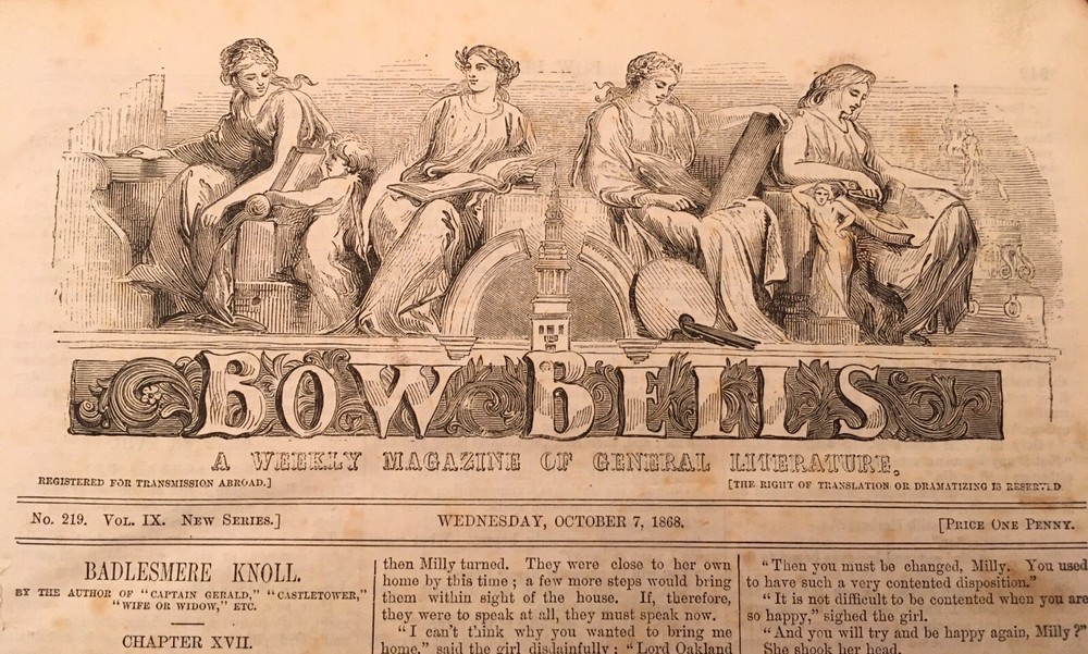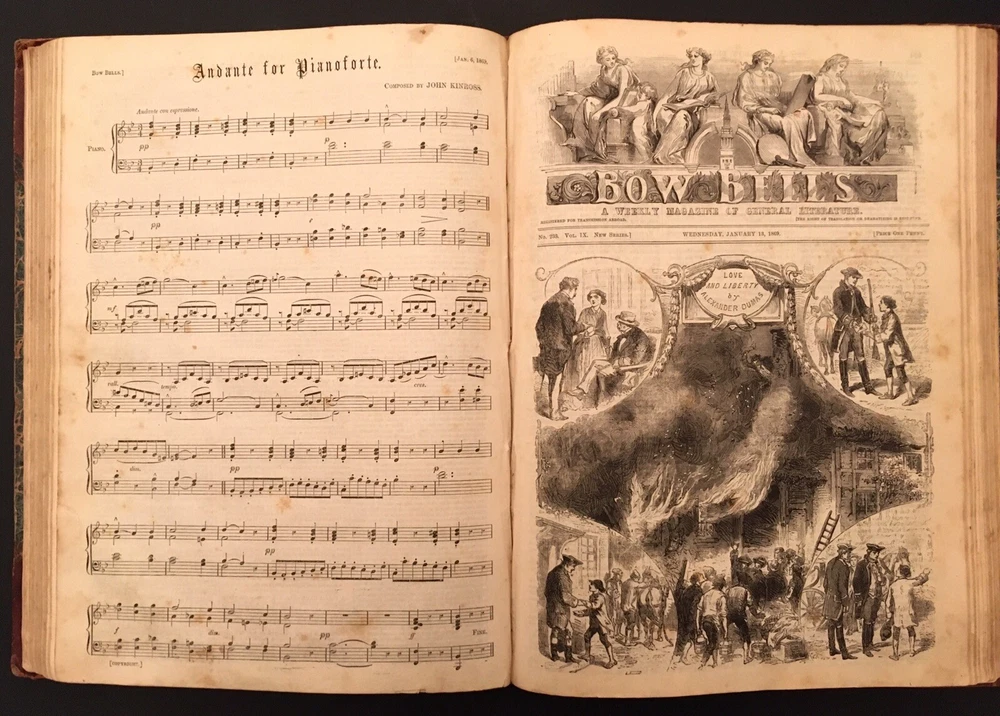 Antique Bow Bells Literary Illustrated Periodical 1868 - 1869 Leather Bound Book London A beautiful antique Bow Bells half leather bound book. This book others a great insight into the past. (please examine all pictures carefully as they form part of the item description) ”Bow Bells was a British "magazine of general literature and art for family reading", founded and published by John Dicks. Bow Bells began in 1862. New series began in 1864 and 1888. It absorbed Reynolds's Miscellany in 1869. It ran until 1897.“ Dimensions: Height 12“, Width 9“, Depth 1-1/2“ (all measurements approx) Condition: In fair to good condition consistent with age and use. The binding has wear to edges. Some pages missing and there is no title page. There is some foxing, some small tears and some minor losses to the edges of a few of the pages. (please examine all pictures carefully as they form part of the item description) Please ask for any additional information or pictures before you commit to buy. No returns ** Buyer is responsible for any C.O.D. import charges including customs, duties and taxes *** Please Note: I will only ship this item to Canada, USA, UK, Australia and New Zealand as I have had issues sending to other locations.