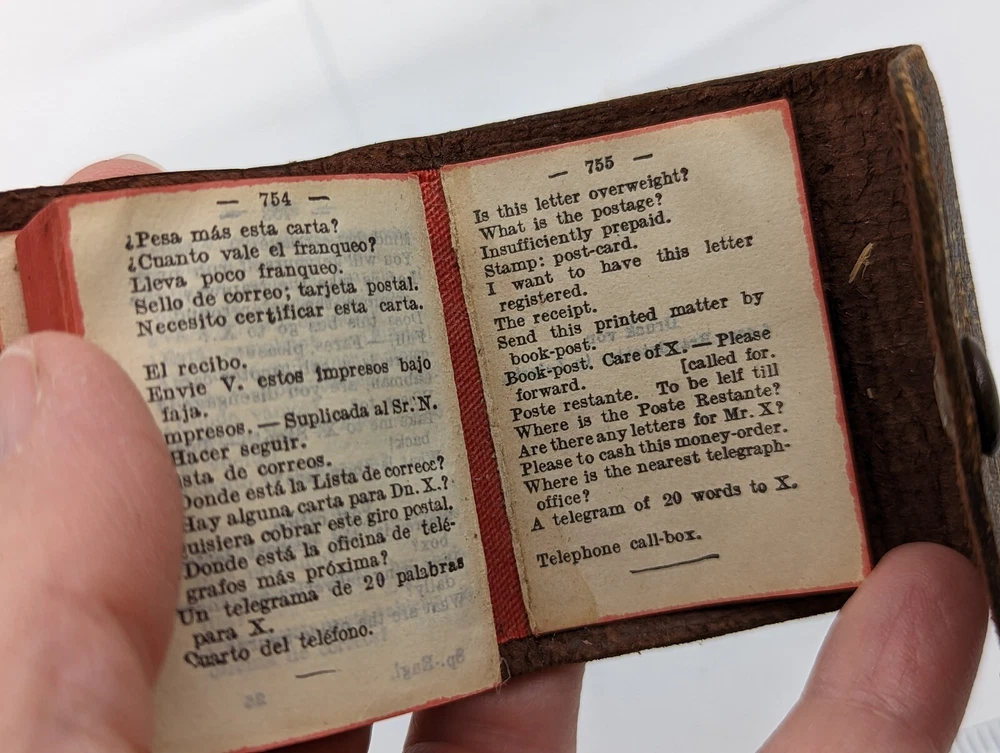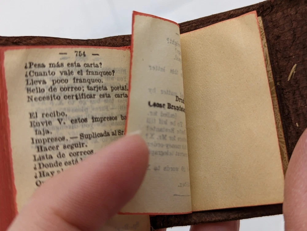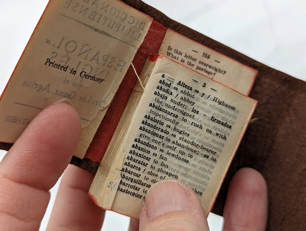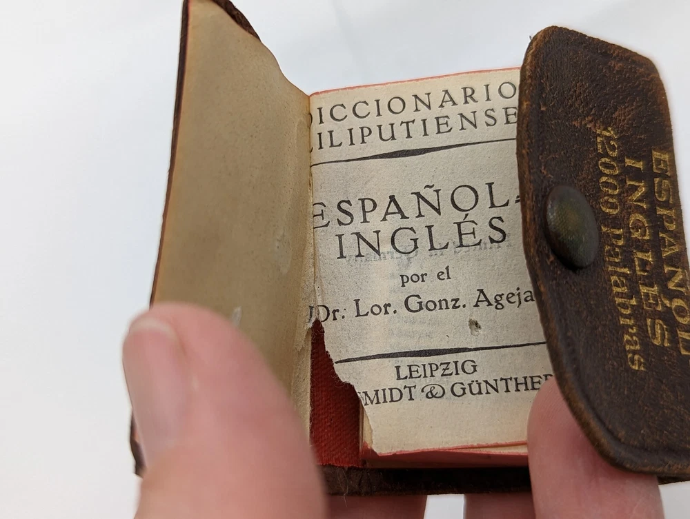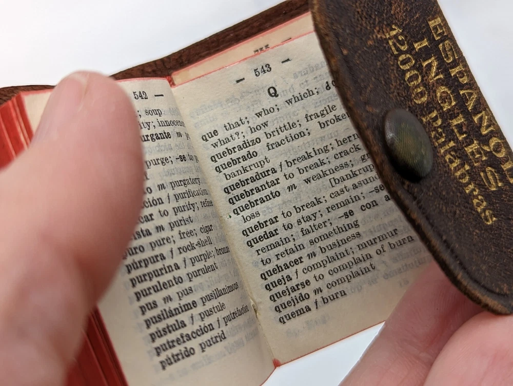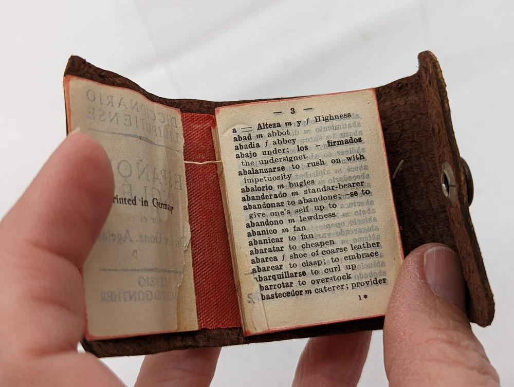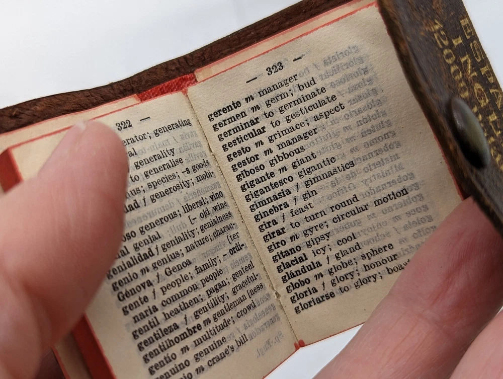 Antique Leather THE LITTLE WEBSTER 12000 Words Dictionary Spanish-English Mini Arizona Biltmore Phoenix on back. Condition is pre-owned with separation of most of the book from the binding. Please review all photos before purchase as there are no returns. Ships with USPS Ground Advantage.