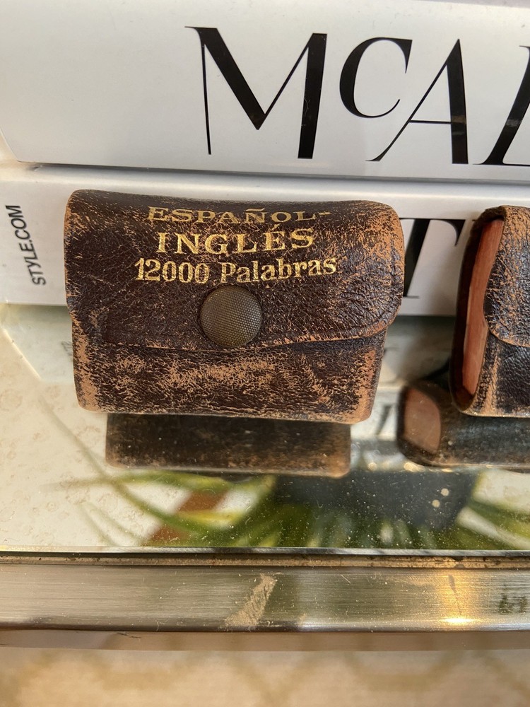 Antique Leather THE LITTLE WEBSTER 12000 Words Dictionary Spanish-English, and English- French. the less common Some separation of pages in one of the books in the very front as shown....