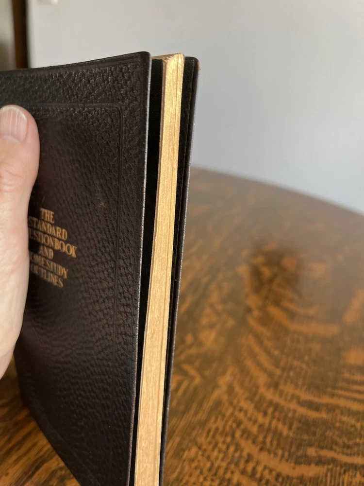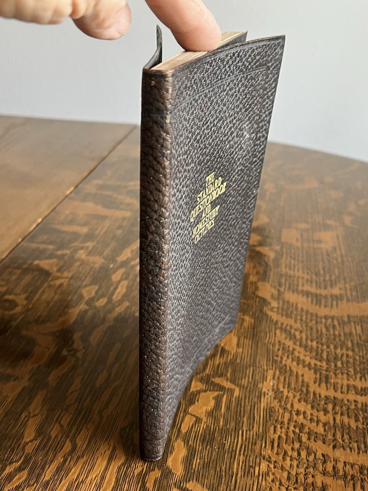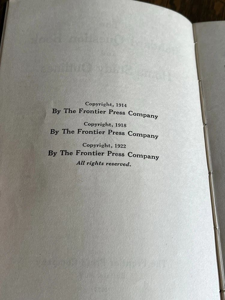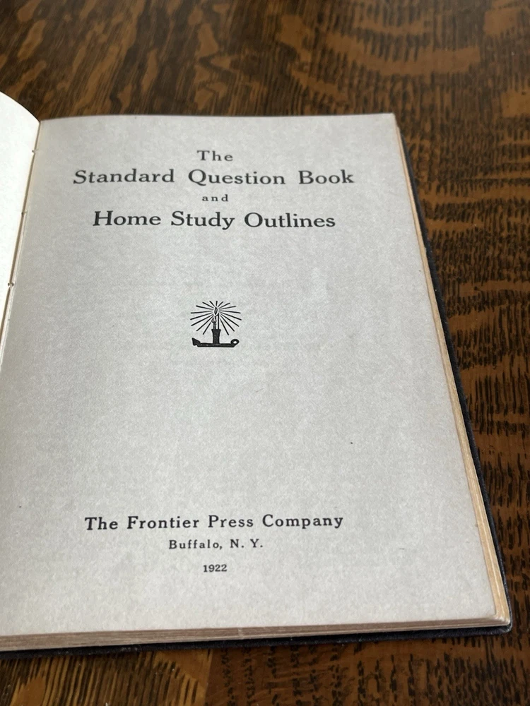 Delve into the world of historical education with "The Standard Question Book and Home Study Outlines," published by Frontier Press in 1922. This antique leather covered volume is a testament to the era's reference materials, offering a glimpse into the past methodologies and perspectives on learning. It is an original piece, crafted in English and hailing from Buffalo, NY, reflecting the educational landscape of early 20th-century North America. The book has some damage (humidity?) to both exterior and interior. It has staining as well as binding issues that are starting to happen. Please see photos. It is approx 7” tall, 4 3/4” wide.