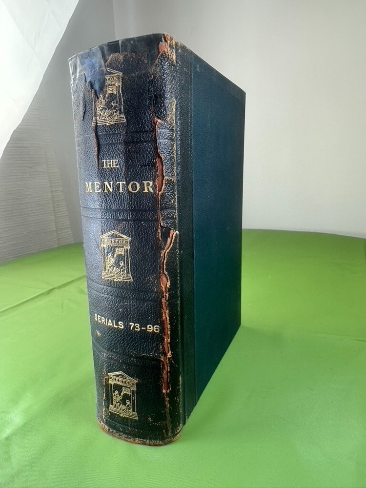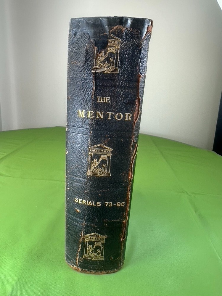 This antique book is a leather-bound collection of serials 73-96 from 1914 published by The Mentor in the United States. It is in English and falls under the subject of reference. A great collector's gift idea for those interested in antiquarian and collectible books.