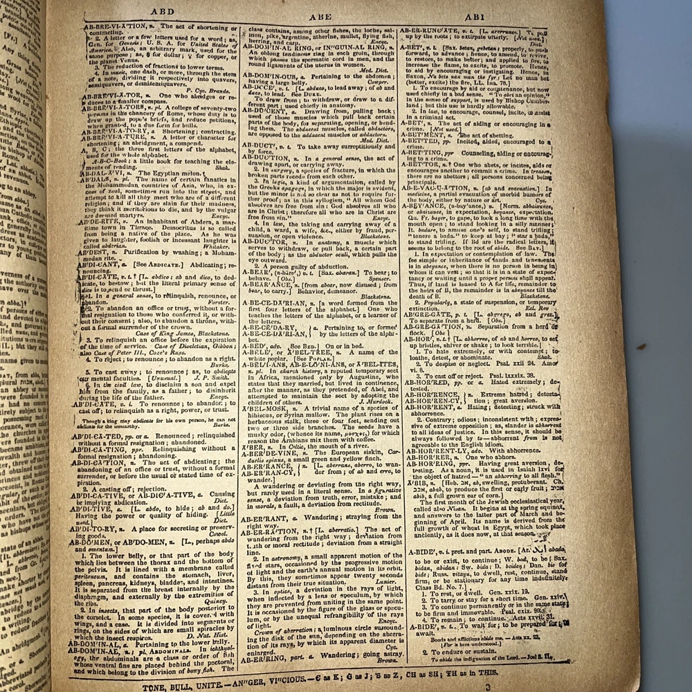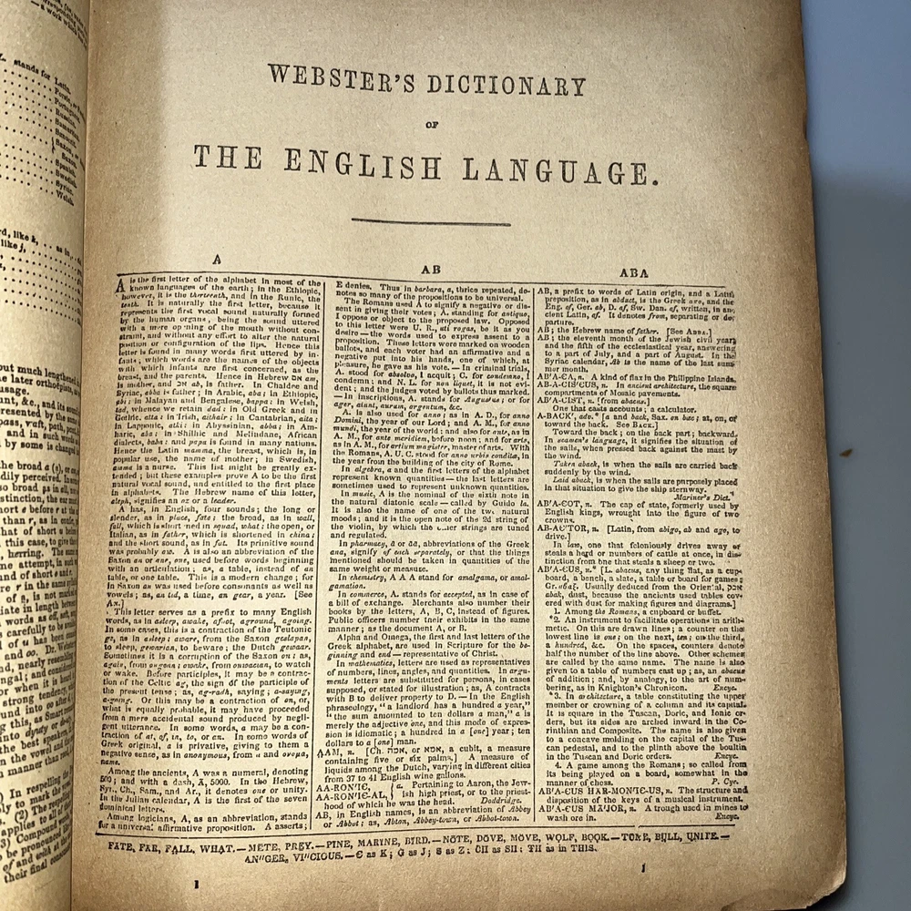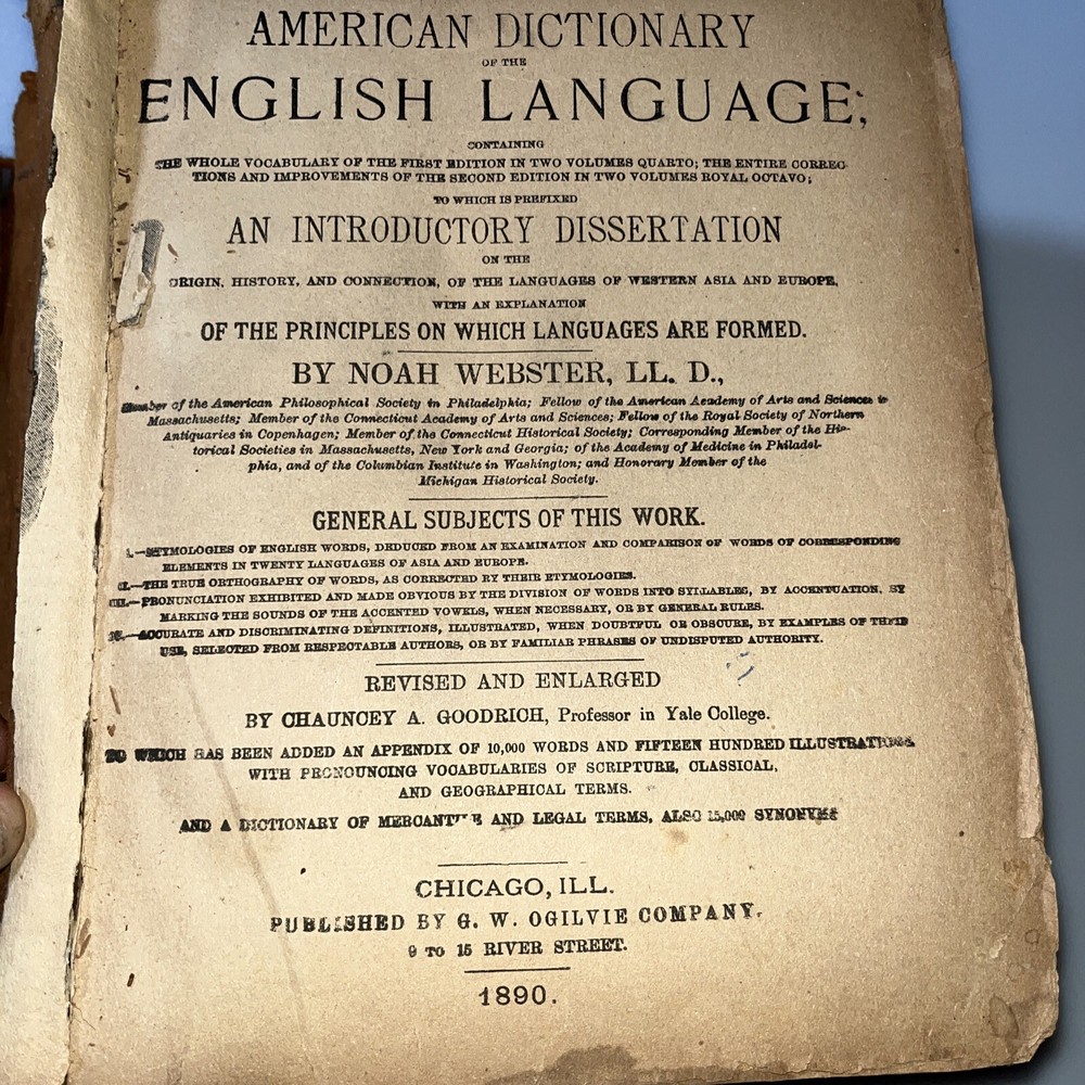 Antique Websters Dictionary 1890 Very Rare Piece Of History Leather Bounded. Pages are separated from spine and some pages have some damage