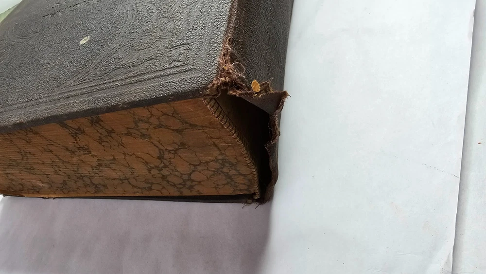 Book is pre-owned and does have wear. It is beginning to come apart at the seam and may be missing a page(s). The leather over is also beginning to crumble at the edges. Please see photos