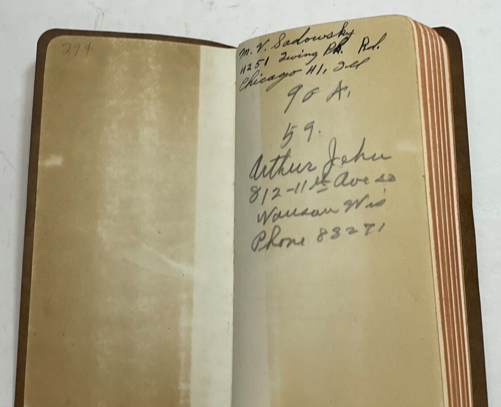 Antique Websters Vest Pocket Dictionary Self Pronouncing De Luxe Edition Approx. 5.5” x 2.75” Leather binding No date provided Previous owner’s information inside front cover and writing inside back cover