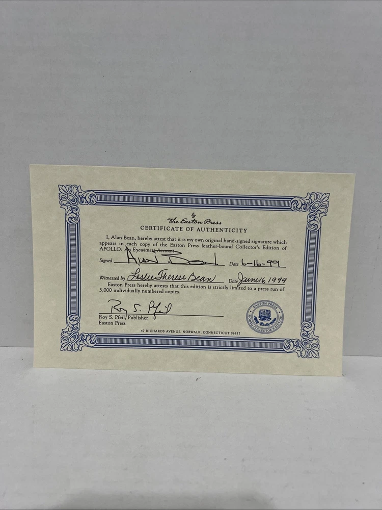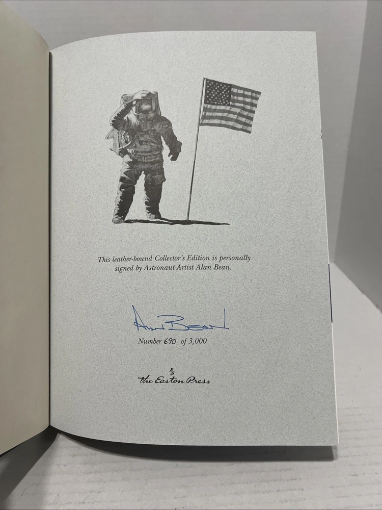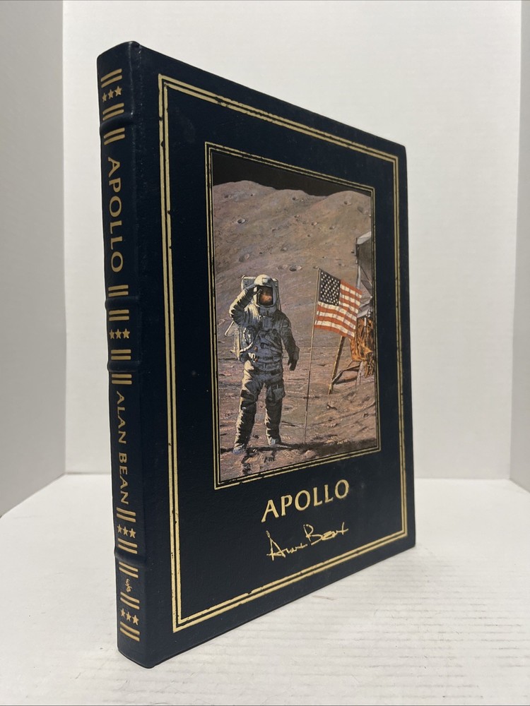 The product is a limited edition leather-bound book titled "Apollo: An Eyewitness Account" by Alan Bean. It is signed by the author and published by Easton Press in 1999. The book is a biography and autobiography focusing on the theme of space exploration, making it a valuable collectible for enthusiasts and collectors alike.