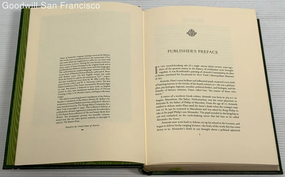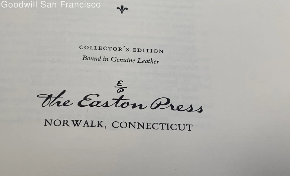 I am pleased to report that the seller goodwillsanfrancisco provided my winnings of the Easton Press collected version of the Ultimate Hitchhiker's Guide to the Galaxy in a very pristine condition, which is hard to ensure in auctions from out of state second hand stores. They were quick to ship it out, packaged it well, and as stated provided it to me in the condition it appeared to be photographed in and as described! So, it was an excellent transaction for both the great value and the service!