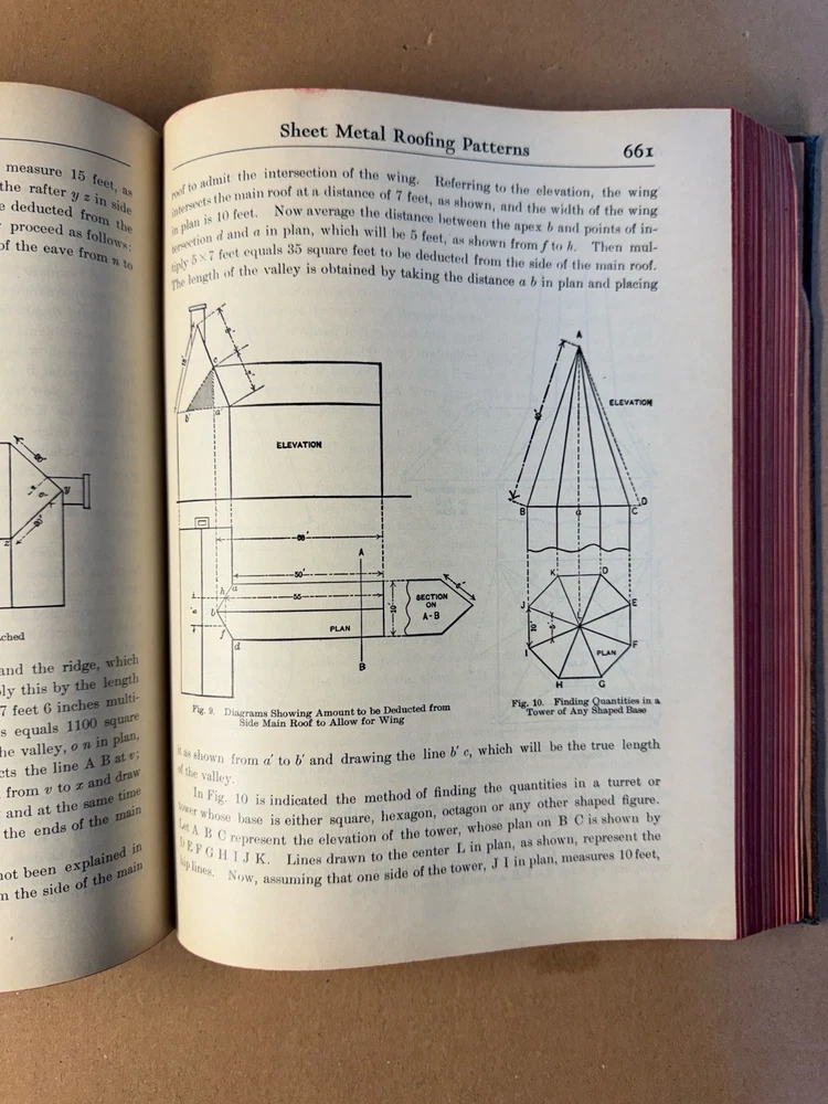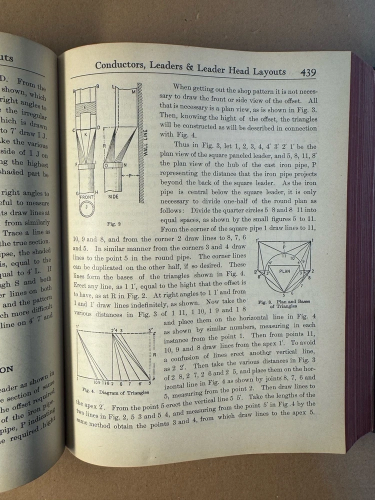 This vintage book is a gem for anyone into sheet metal work! The leather-bound edition from 1942 is packed with detailed illustrations and practical layouts. Despite a minor dog ear on the back cover, it’s in great shape and full of timeless knowledge. A must-have for craftsmen and collectors alike—solid reference material that still holds up today.