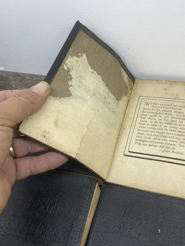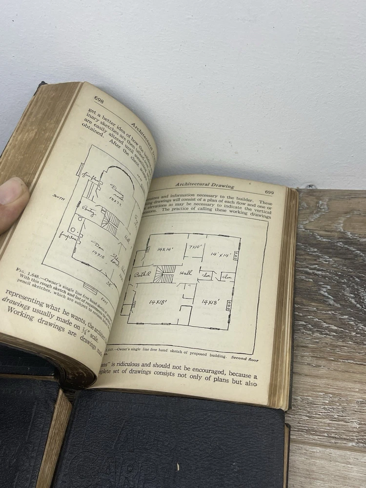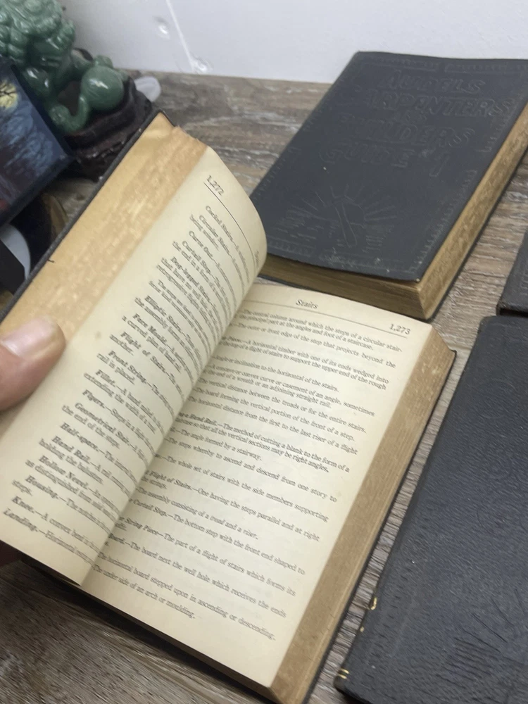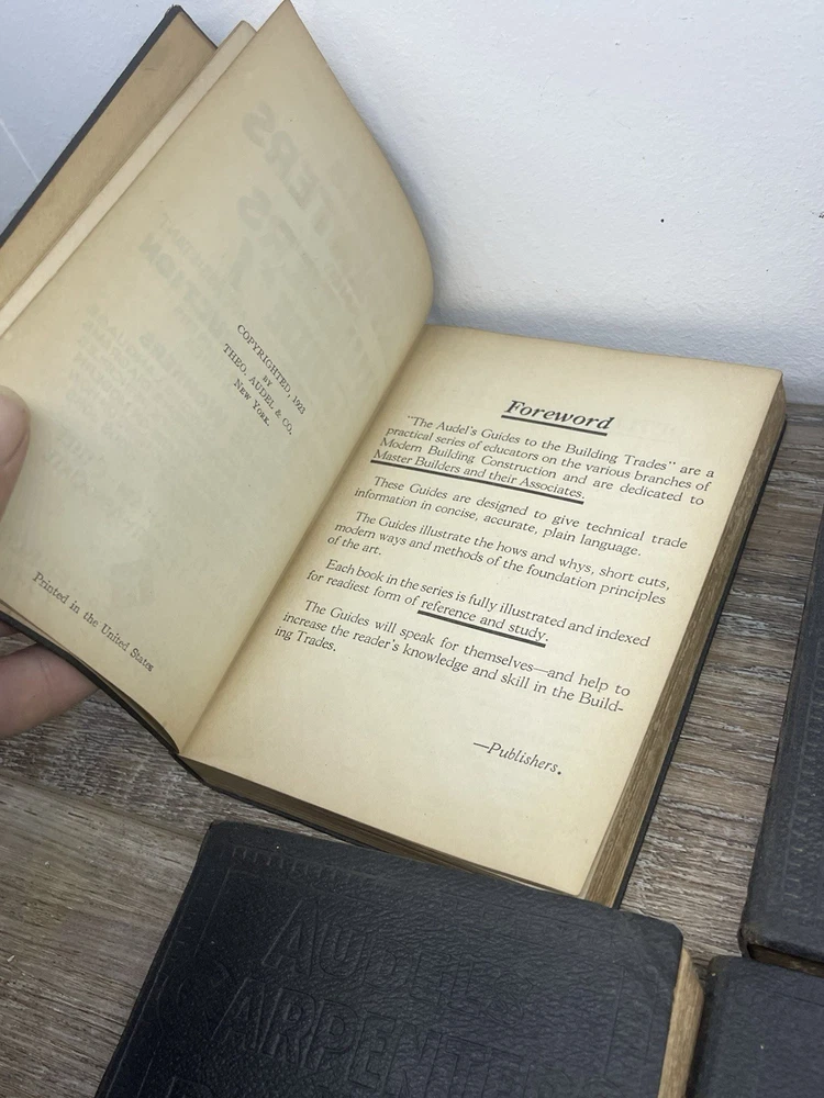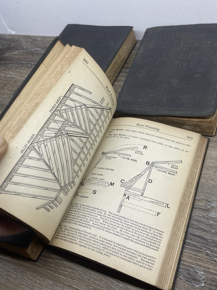 Delve into the world of woodworking and construction with the Audels 1923 Carpenters and Builders Guide Books Set. Comprising Volumes 1-4, this comprehensive set is a treasure trove of knowledge for both seasoned craftsmen and aspiring carpenters. Authored by Frank Graham, these books are a testament to the art and science of carpentry, offering a deep dive into various techniques and projects. Bound in elegant leather and published in the United States, each book is rich with detailed illustrations that enhance the learning process. The texts are in English and serve as original prints from 1923, making them not only invaluable for their content but also as collectible items for enthusiasts of antiquarian books. Whether for reference or collection, this set is a remarkable find for anyone passionate about the craft of building. Books do have wear book 2 especially no missing pages see pictures