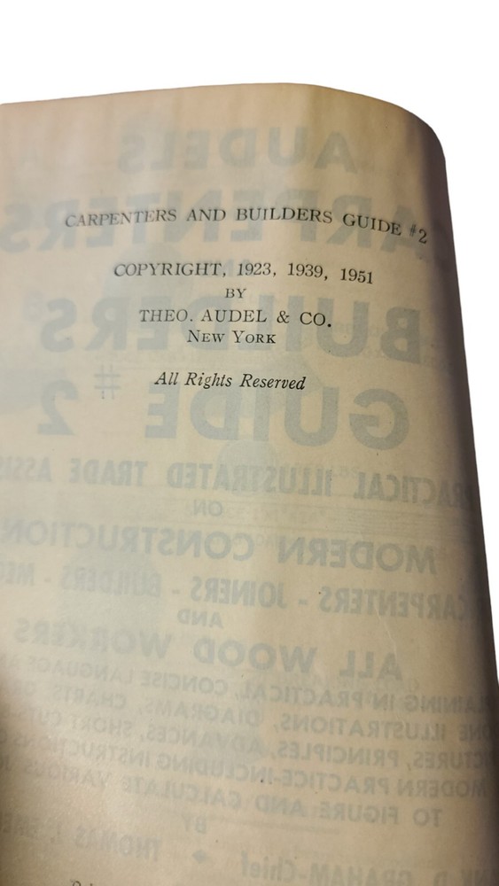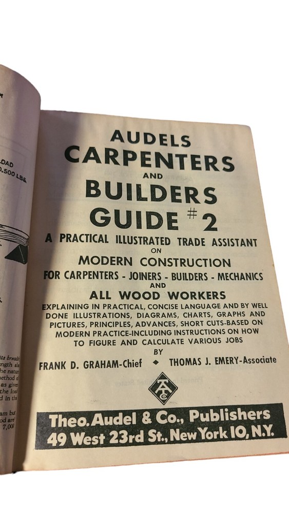 This is a valuable reference book for carpenters and builders. It provides detailed instructions and illustrations on various topics related to carpentry and building. The book is an original publication by Theo Audel and Company, with Frank D. Graham and Thomas J. Emery as the authors. It is bound in leather and published in New York, United States. The book is not personalized and does not contain any California Prop 65 warnings. It is a great addition to any collection of antique and collectible books.