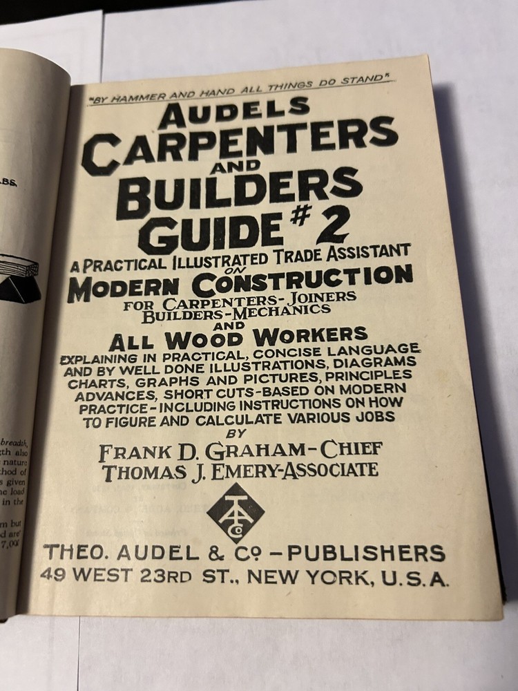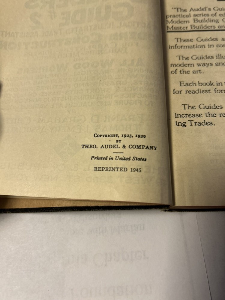 Audels Carpenters and Builders Guide #2, 1945, Leather bound Used