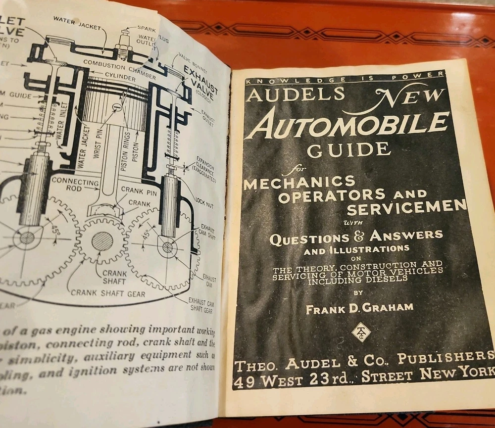 Audels New Automobile Guide Book Manual Leather Cover Black 1949. Pictures show condition. Please text with any questions. Thanks!