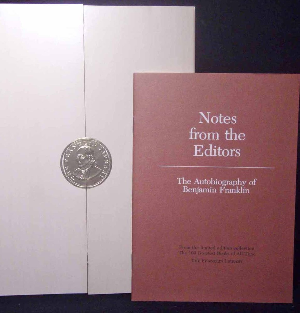 The Autobiography Benjamin Franklin Franklin Library Leather Bound Collectors Edition From 100 Greatest Books Of All Time.. . . The Autobiography Benjamin Franklin Franklin Library Leather Bound Collectors Edition From 100 Greatest Books Of All Time.. Bound in genuine leather 22k gold accents, gilt page edges, and sewn in bookmark and booklet. New condition. Keep on a shelf in it's box for over 35 years now. The box was opened and it was discovered that there is spotting on the side gild. Stored in original mailer. (mailer box not included.) . . . . Please!! View all photos that are provided in the listing. They are part of the description.Most of the items I sell are all garage sale, estate and auction finds or picking finds. ALL items are honestly and accurately described to the best my ability allows. Each person has his or her own standards regarding condition. Therefore, please read my descriptions carefully and ask any questions before bidding, As with any vintage or used items I may miss something. If this happens, please contact me ASAP so we can work out a solution to your satisfaction. I am always open to questions and suggestions, so feel free to email. . NOTE TO INTERNATIONAL BUYERS: BUYERS MUST CONTACT SELLER FOR A SHIPPING QUOTE "BEFORE" BUYING. INTERNATIONAL BUYERS PAY FOR ALL SHIPPING COST. I ONLY USE USPS PRIORITY MAIL WITH TRACKING AND INSURANCE. (so don't be surprised that it actual cost money to ship to the other side of the world.) . . BE SURE TO VISIT MY STORE FOR A WIDE VARIETY OF GIFTS, COLLECTIBLES, POTTERY, GAMES, BOOKS, AND MUSIC. . . THANKS FOR LOOKING. My Shipping Policies: ECONOMY SHIPPING $4.95 ( Alaska and Hawaii may be more) and costs may vary to other places. . International buyers agrees to contact seller BEFORE buying for a shipping quote and to pay for all shipping cost. If you ship overseas and you pay with Paypal, all items must be shipped with a tracking number and insurance. SPECIAL NOTE ON SHIPPING: EBAY TAKES 15% OF EVERY DOLLAR COLLECTED FOR SHIPPING. MEANING FOR EVERY $10 YOU SEND ME TO SHIP I REALLY ONLY GET $8.50. SO PLEASE KEEP THAT IN MIND WHEN RATING MY SHIPPING COST. Buying Policies: Buyer must respond to seller within 3 days of the auctions end, and payment must be received within 7 days of the auctions end, or item will be re-listed. Return Policies: If your are not satisfied with any merchandise you receive AND the item was not as described, we will gladly refund your payment in full, less handling charges and return postage, Buyer must return the item in the same manner it was packed and shipped. Buyer must obtain a tracking number and if the items value is more than $50 the buyer must obtain shipping insurance. When the item are returned in the condition they were sent out in a refund will be issued. . If Item was factory sealed it needs to be returned "FACTORY SEALED." Item must be returned within 14 days after item is received...