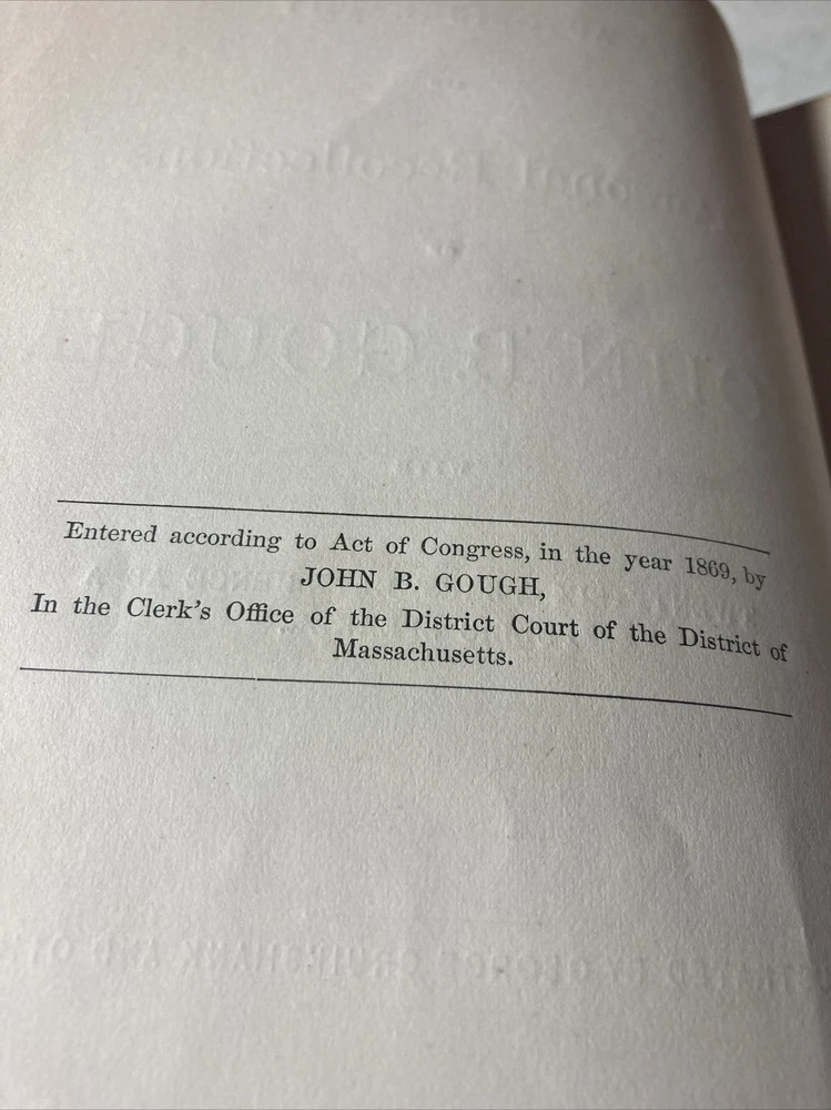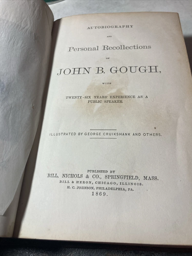 Autobiography and Personal Recollections of John B. Gough : 1869 HC Leather 1st edition Ex library book of mechanics Institute Mechanics Mercantile institute , library Les Poe Civil War collection Pretty good condition for its age bookplate photos for condition B6
