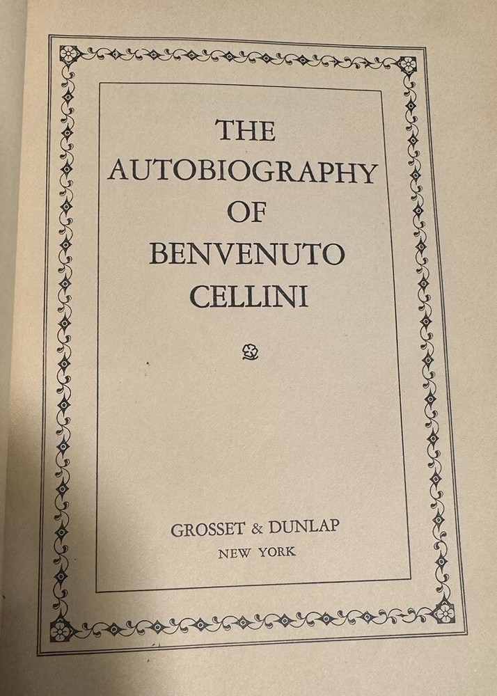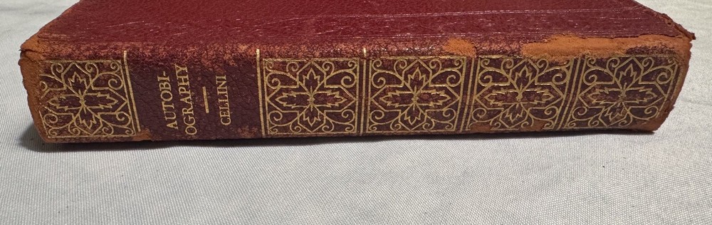 The Autobiography of Benvenuto Cellini OVERALL CONDITION: GOOD Undated. A vintage copy! Published by Grosset & Dunlap in New York. In soft full red leather binding. Top edge gilt. marbled endpapers. Tooled vertical scrollwork on top cover near spine. Octavo, 506 pp. Benvenuto Cellini (November 1500 – February 1571) was an Italian goldsmith, sculptor, and author. His best-known extant works include the Cellini Salt Cellar, the sculpture of Perseus with the Head of Medusa, and his autobiography, which has been described as "one of the most important documents of the 16th century". The book is in GOOD condition. Heavy rubbing to spine leather. Rubbing and fraying to extremities. Cracked front hinge. Darkened spots on endpapers. Several pages with large corner folds/creases. Soiling to edges. Top margins sun-toned. No writing or ex libris marks. As a fellow book collector, I know how frustrating it can be when items aren’t accurately described or poorly packaged for shipping. That is why I (1) take a lot of pictures and try to describe condition issues as accurately as possible and (2) pack your book purchases with the utmost care before shipping. I have been selling and buying on eBay for over 10 years and have a 100% satisfaction rating, and offer a 100% satisfaction guarantee 30-day return policy. Please follow me as I have thousands of highly collectible books to list in the coming weeks and months!