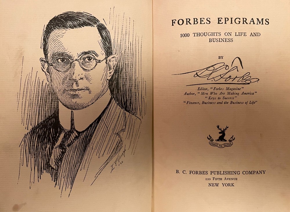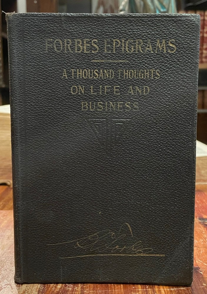 Forbes Epigrams: 1000 Thoughts on Life and Business Author: FORBES, B.C. Title: Forbes Epigrams: 1000 Thoughts on Life and Business Publication: New York: B.C. Forbes Publishing Co., 1922 Description: Leather bound. 8vo. Flexible leather boards. Pencil scribbles on endpapers. Several page corners are creased to torn, not affecting text. This is an antique leather-bound book of quotes by business magnate Forbes. Good. Seller ID: 6261 Subject: Antique (Pre-1920s), Biography & Memoir, Limited Editions & Decorative Bindings Uncharted Books Uncharted Books is an independent brick-and-mortar bookstore in Chicago. We sell a highly curated selection of used books, zines, and rare titles, with a focus on the literary, the local, the strange, and the adventurous. Terms All orders ship within 3 business days. Standard mail is USPS Media Mail. Expedited and international shipping (through eBay's Global Shipping Program) are also available. We do offer combined shipping on multiple orders. All items are guaranteed to be as described or they may be returned within 30 days of receipt for a full refund. Our inventory is updated frequently, but in rare instances, an item which was purchased in our storefront might be purchased again on eBay before we are able to update our stock. If this happens, we will cancel the order and offer an immediate refund with our apologies. Unfortunately, since we only carry unique items, we are not able to fulfill unavailable orders. This doesn't happen very often though! This listing was created by Bibliopolis.