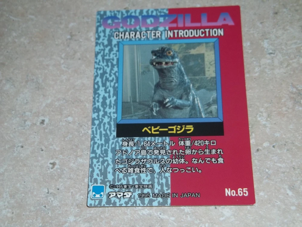 BABY GODZILLA 1995 TRADING CARD amada very rare japanese #65 Placed in top loader when purchased...