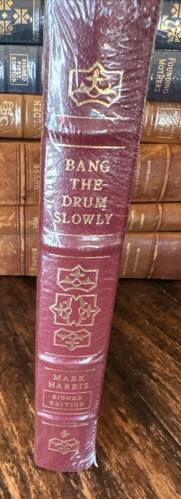BANG THE DRUM SLOWLY By Mark Harris Signed Easton Press 1st Edition 1st Printing. SEALED Book is brand new -Hardcover burgundy leather with gold gilded page edges and decorative details -gold gilt titling to the spine with 4 raised bands , both boards have gold gilt detailing. Sealed unread book Please see pictures-We have hundreds of books listed and combine shipping on multiple purchases whenever possible ( K)