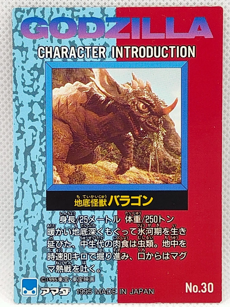 BARAGON GODZILLA CHARACTER INTRODUCTION Amada Trading Cards MADE IN JAPAN