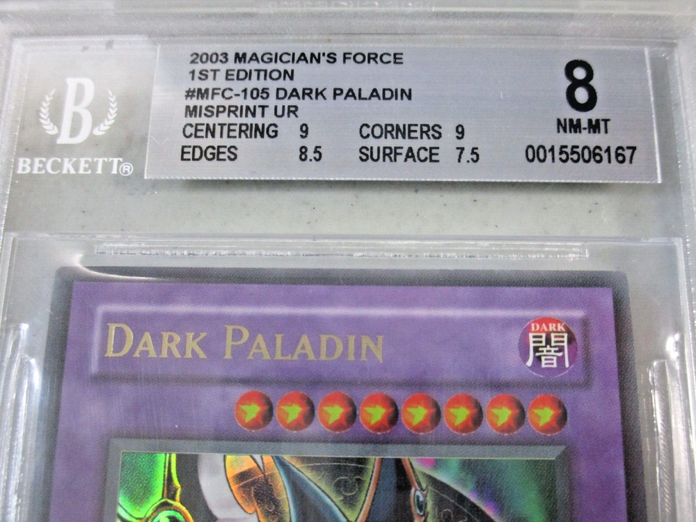 ITEM: Dark Paladin (misprint artwork) - MFC-105 1st Edition Ultra Rare - English CONDITION: BGS 8 near mint - mint Same day handling when paid before 12 CST. I ship every day except Sundays.