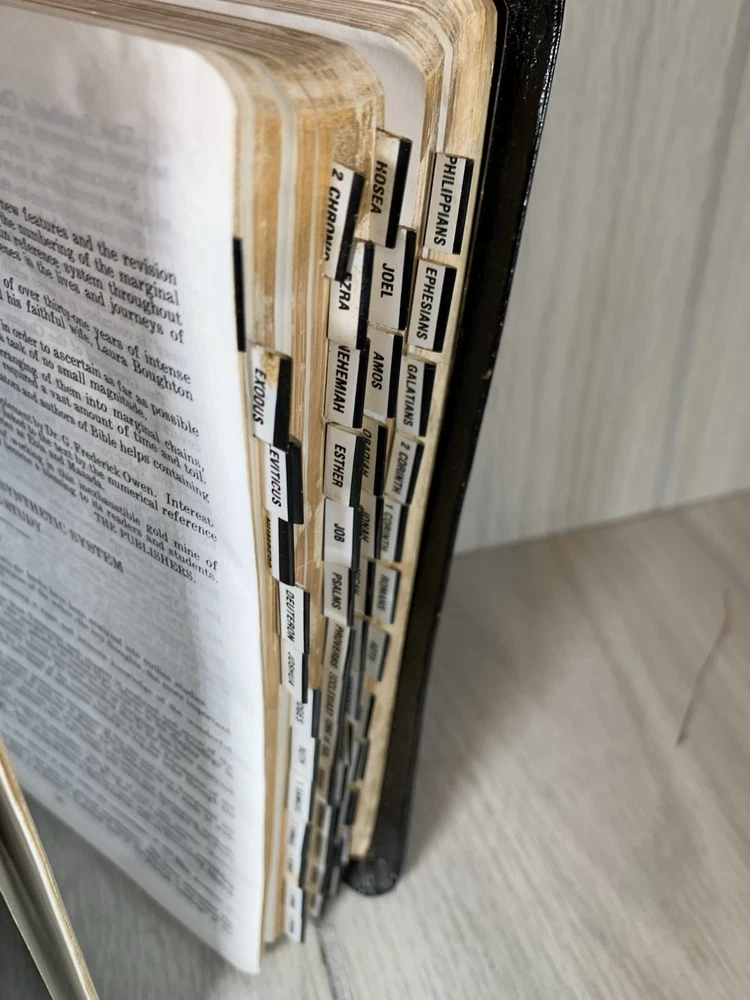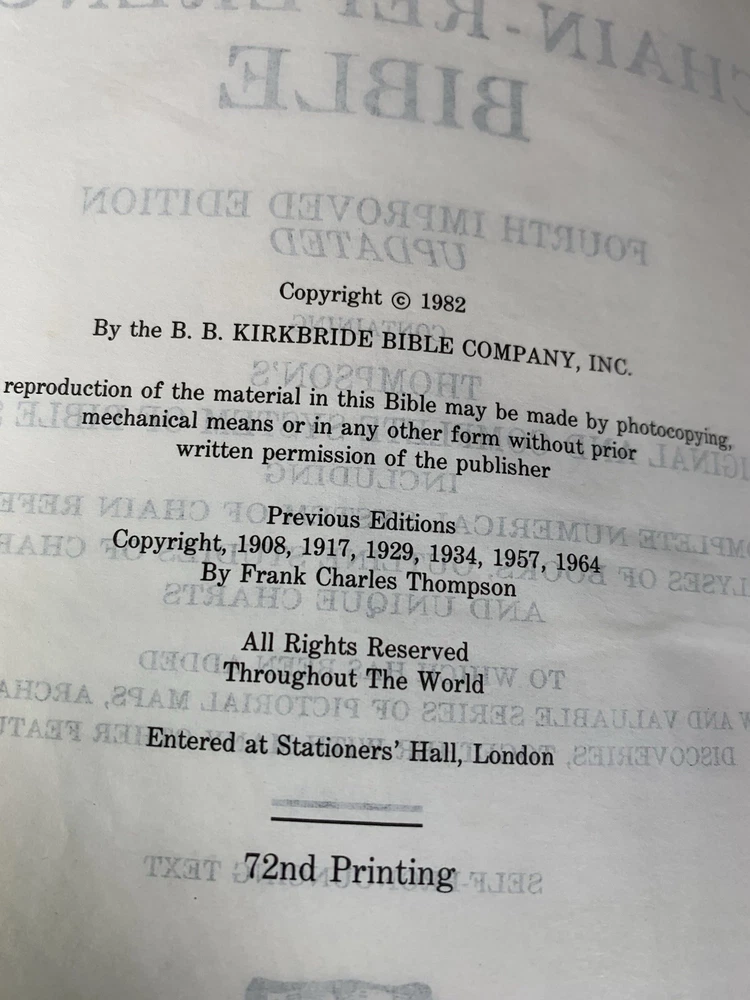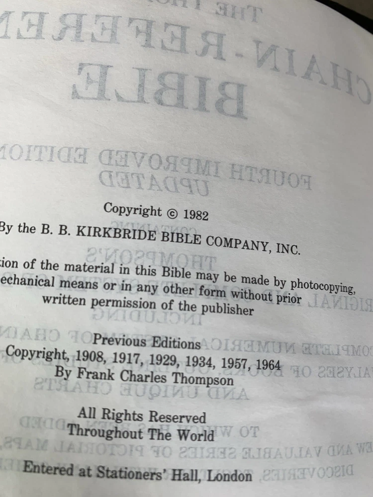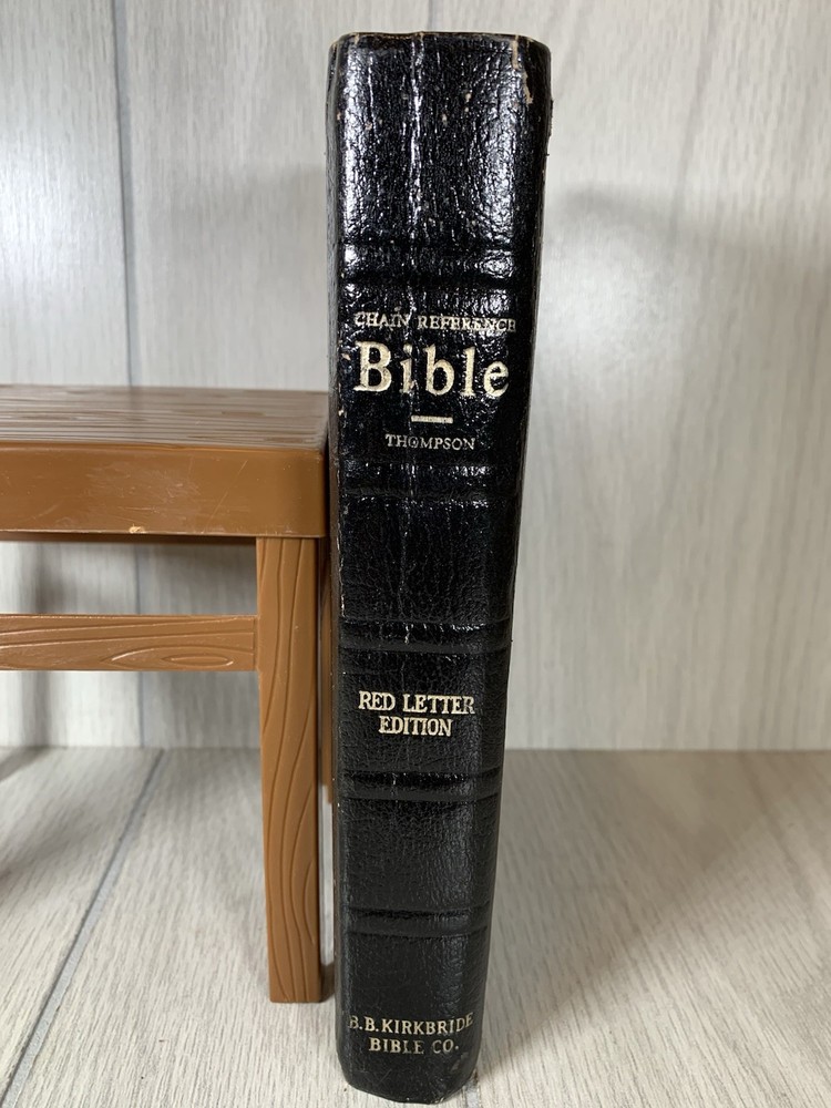 This Bible is an incredible study tool with its detailed chain references and red-letter text, making scripture study richer and more engaging. The leather binding feels premium, and the gold accents add elegance, though there’s a minor condition note on the front cover. Perfect for deep study or as a treasured keepsake!