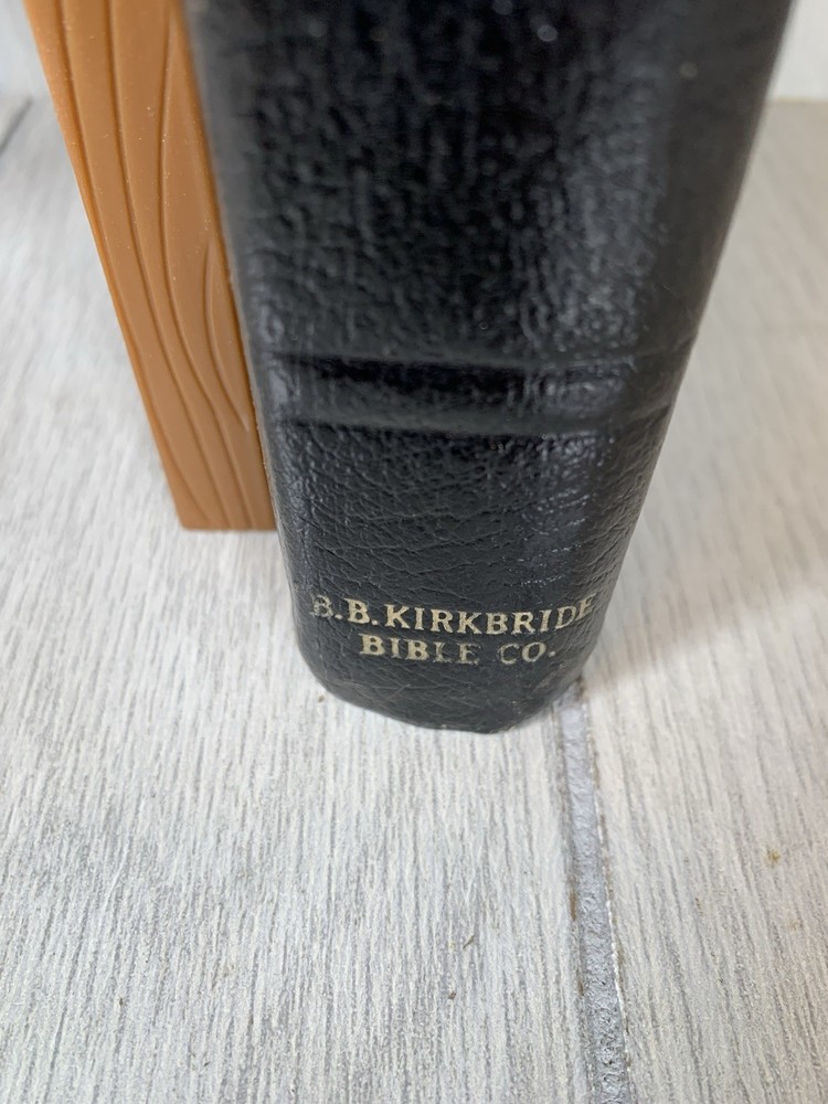 This Bible is a valuable addition to any collection. The B.B. Kirkbride Thompson Chain Reference KJV 1982 Red Letter Edition offers a wealth of information for those seeking a deeper understanding of the scriptures. With its numerous references and concordance, it is an excellent resource for scholars, pastors, and anyone interested in biblical studies. The beautiful leather binding and gold lettering make it a timeless piece that will be cherished for years to come. Please note condition issue on front cover along with other condition issues as shown in photos. Also, this Bible includes tabs, indicating the beginning of each book of the Bible as shown in photos