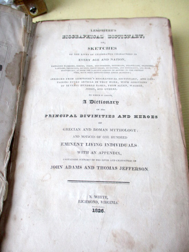 ENLARGED PICTURES!! Please scroll ALL the way down to view LARGER images. V 579. Abridged From Lempriere’s Original and added to. See photo of title page. Pub. N. White, Richmond, Virginia. 1826. Octavo. 450 pages. Double column. Full calf leather. Ornate gilded spine. Medium age toning to text. Strong copy, medium wear. Frontispiece illustration, pasted onto previous end paper. Otherwise, Very Good condition. Please do not hesitate to e-mail with any questions. As Always, Satisfaction Guaranteed! PAYMENT: PayPal, because eBay requires sellers to list electronic payments exclusively. I expect to receive payment within 10 days, unless we have made other arrangements. MEDIA MAIL: The majority of my books are sent Media Mail to U.S. customers. I add $1.00 for shipping materials, etc. (The shipping price that you see at the top of the page includes the handling fee.) PRIORITY MAIL: I will send both Media cost and Priority cost with invoice, on books which seem to warrant Priority service or when buyer requests it. I'm glad to combine multiple purchases in order to minimize shipping costs. I WILL SHIP INTERNATIONALLY, and I try to be as economical as possible with the shipping costs. Whenever a book will fit comfortably in a Priority Flat Rate Envelope, I'll send it that way. RETURN POLICY: Satisfaction Guaranteed! Payment I accept the following forms of payment: PayPal Shipping & Handling I'm glad to combine multiple purchases for less expensive shipping costs. US Shipping $5.00 USPS Media Mail® International Shipping $32.00 USPS Priority Mail International FREE scheduling, supersized images and templates. Get Vendio Sales Manager. FREE scheduling, supersized images and templates. Get Vendio Sales Manager. Over 100,000,000 served. Get FREE counters from Vendio today!