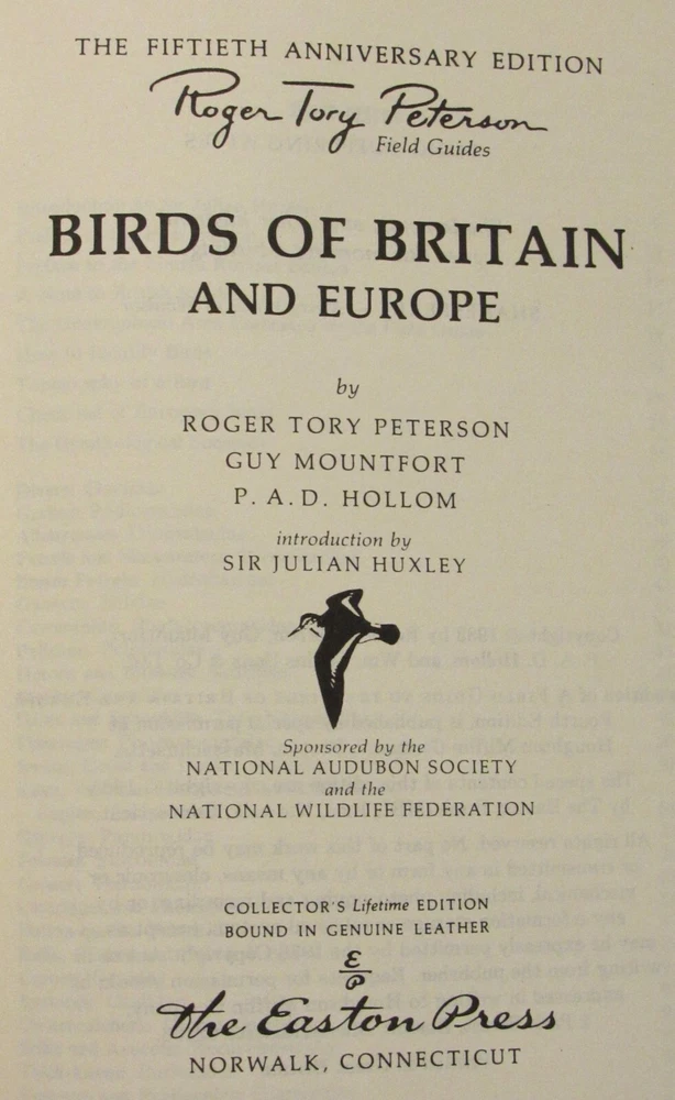 Leather Hardcover. Like New condition, Clean, unmarked, perfect binding. Packaged safely and carefully. Shipped promptly. BIRDS OF BRITAIN AND EUROPE Easton Press, Peterson Field Guide LEATHER Collector's Edition LIKE NEW. 50th Anniversary Edition. Shipped Media Mail. To USA only. Packaged safely and carefully. If You buy more than one Buy-It-Now listing, Your excess postage will be refunded, so You pay only the actual shipping costs. Peterson Easton Box