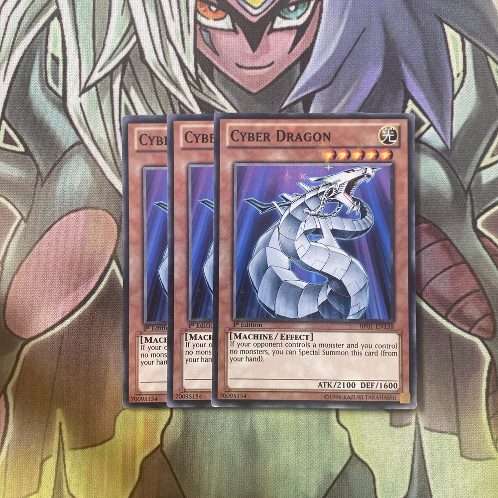 This playset is mixed edition (you will receive a mixture of unlimited and 1st edition cards) Listing Template 2018 Home About Us Shipping Returns View Feedback Contact Us BP01-EN138 x3 Cyber Dragon Starfoil Excellent Condition Yugioh These cards are in excellent condition as per the photos. You will receive a playset of cards. (x3) Thanks for viewing! Thanks for viewing! Please check out our eBay store for more cards and don’t forget to use our promotional offers to save money on multiple items! We offer COMBINED INTERNATIONAL SHIPPING! Please contact us and ask us to combine multiple cards in your shipment to save on postage costs! International tracking is included on all orders over £40. If you require a tracking code under this amount it is an additional charge of £6.50. Please add this to your order or contact us for more information. We provide postage free in the UK! All of our single cards are sleeved, with a taped Toploader to ensure maximum protection, and the best overall condition of your cards! Combined orders may in the same sleeve, unless requested otherwise. Do you want to earn extra cash for your old cards? Clear out your binder and send us photos of what you have! We will happily send you an offer and sort out postage to make it hassle free. There's no harm in trying! Message us now! Free UK Delivery! Honest Sellers. We take care of the cards so you can worry less about the fuss and more about winning, competing and collecting. About Us We started selling collectable cards over 6 years ago after selling off our own childhood Yu-Gi-Oh collection. We then rediscovered our passion for trading card games. Ever since, my brother and I have been trying to ensure that we provide a range of cards within the fastest possible time to ensure you can build your collection as you’d like it! With over 35,000 positive feedback we strive for quality customer service, aiming to give the service that we would like to receive and stock a huge inventory of new and vintage collectable cards from popular games such as Yu-Gi-Oh and Pokemon so there’s something for everyone! Our goal is that we hope to build a collectable card community as passionate about collectable cards as we are! Contact Us The best way to get in contact is through eBay’s ‘contact seller’ button where we’ll try to get back to you as soon as possible. Feedback We always prioritise your buying experience so you can shop without worry. Contact us if there’s any part of an order you were dissatisfied with as we hope to resolve any issues as soon as possible. Buy with confidence. View Our Categories