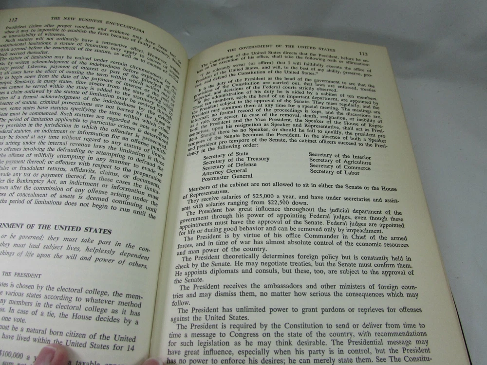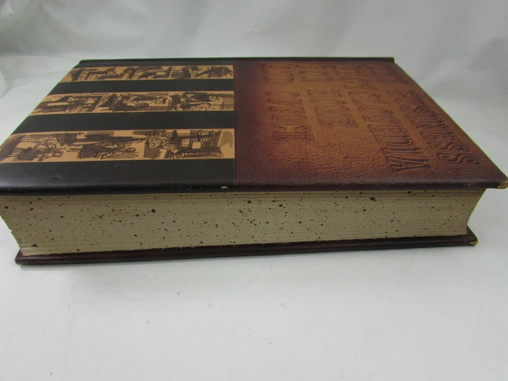 This vintage 1963 Business Encyclopedia is a gem for collectors and professionals alike! The leather binding adds a classic executive feel, and while it shows some shelf wear and age-related darkening, the content remains incredibly valuable. Perfect for those who appreciate timeless business knowledge with character. A fantastic find for any office or study!
