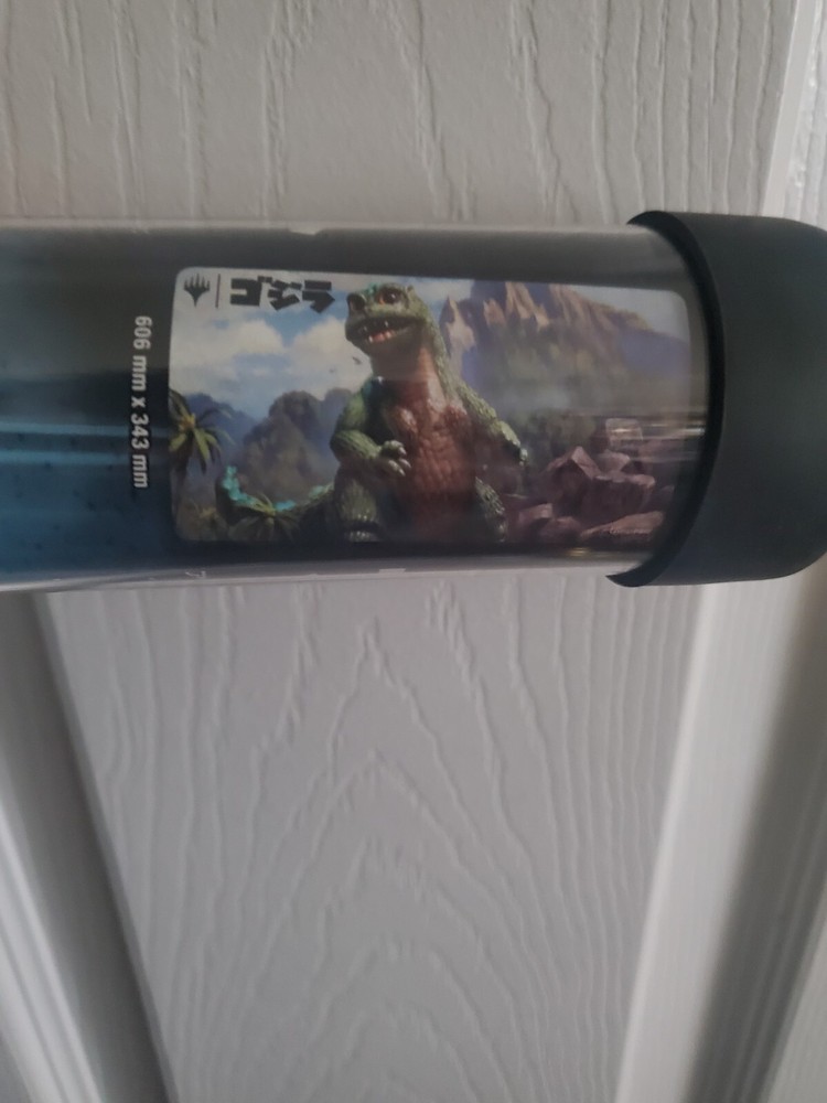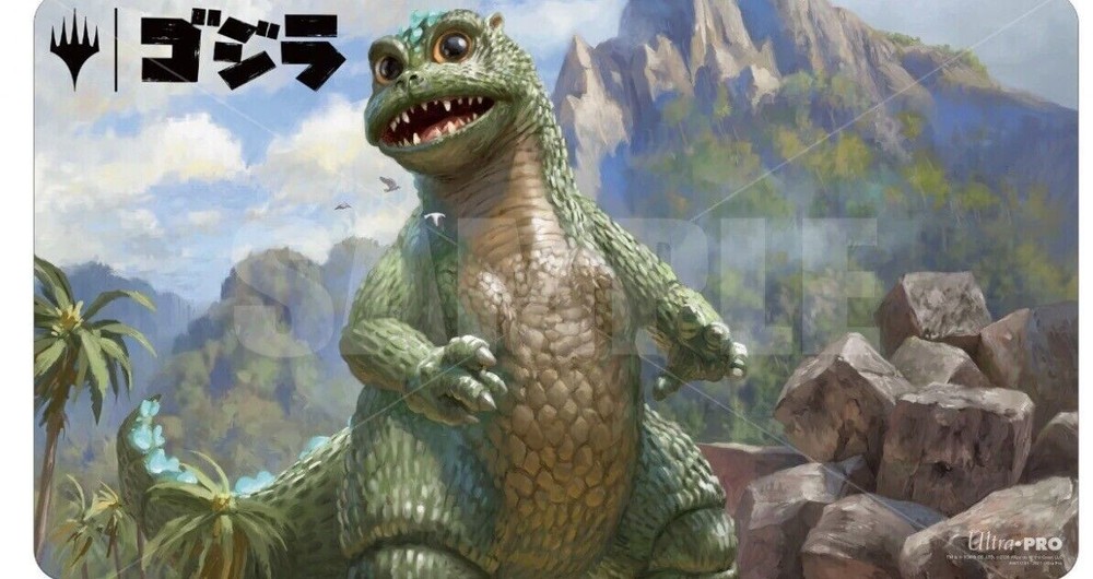 Alternate Art Baby Godzilla Ultra Pro Magic Gathering Ikoria Playmat New Mint Tube Case Playmats featuring alternate artwork from Magic: The Gathering Ikoria set. With dimensions of approximately 24" X 13-1/2", this playmat is also the perfect decorative over sized mouse pad for computer and laptop workstations. Non-slip rubber backing lets the playmat lay flat and prevents it from shifting during use. Item will ship in a box with tracking