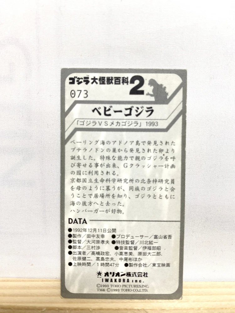 You can get a discount if you buy the products in bulk Please select multiple items you would like to purchase and send us a message. I would be happy if I could make a good deal with you. Send us the URL of the product you want. If you don't know, send us the product number. "a-ri-ga-to-u" I live in Tokyo, Japan. I sell Japanese original goods and character goods. Please feel free to say "Hi" if you find the item that you want. Description [Title] Baby Godzilla Japanese Monster Encyclopedia 2 Mini Card SFX TCG Toho Rare No073 [Condition] Used."" Please judge with photos."" Shipping Economy Shipping [ No Tracking number , Japan Post Airmail] : Cost Free, About 2-3 weeks to arrive --Shipping-- Shipping from Japan Ship to Worldwide Airmail (No insurance & No tracking number, about 7-14 days to USA.) tracking number +4$ (Insurance & Tacking number, about 7-14 days to USA.) EMS +30$ (insurance &tracking number 3-7 days to USA.) International Buyers - Please Note: Import duties, taxes and charges are not included in the item price or shipping charges. These charges are the buyer's responsibility. Please check with your country's customs office to determine what these additional costs will be prior to bidding/buying. These charges are normally collected by the delivering freight (shipping) company or when you pick the item up - do not confuse them for additional shipping charges. We do not mark merchandise values below value or mark items as gifts - US and International government regulations prohibit such behavior.