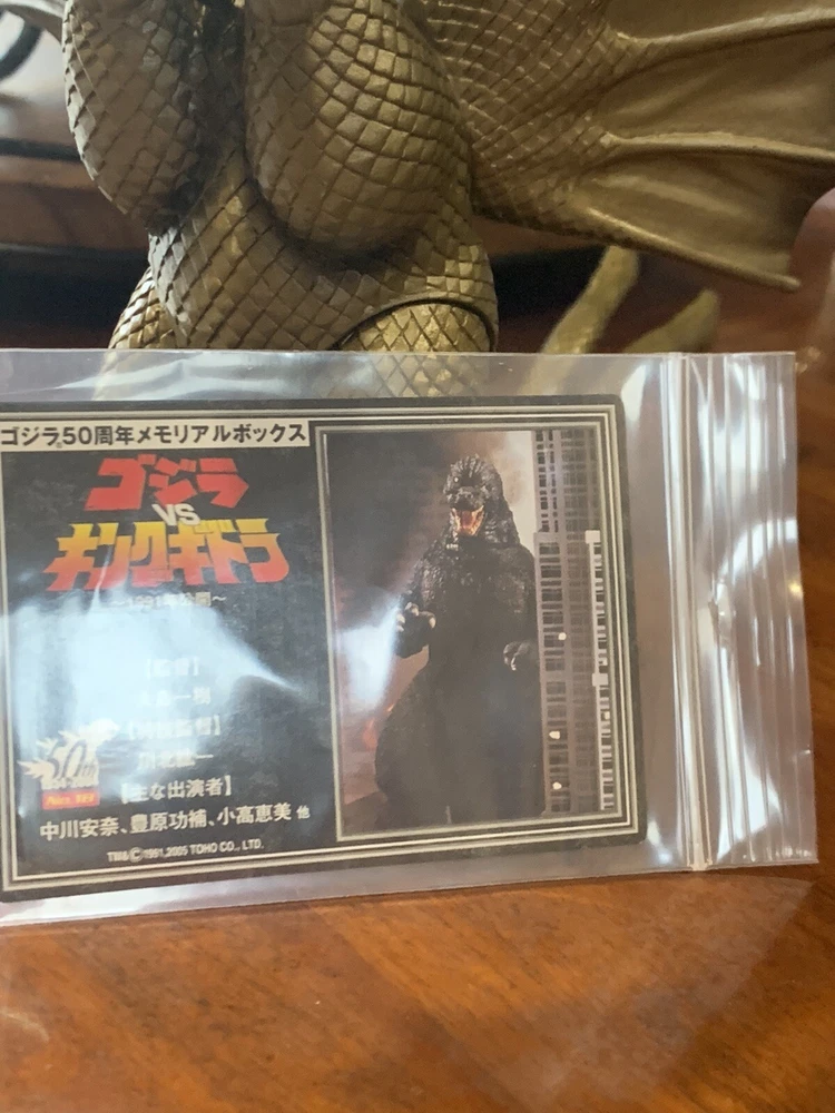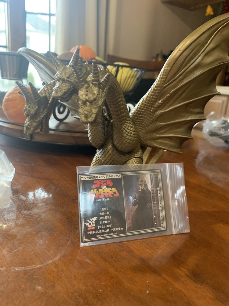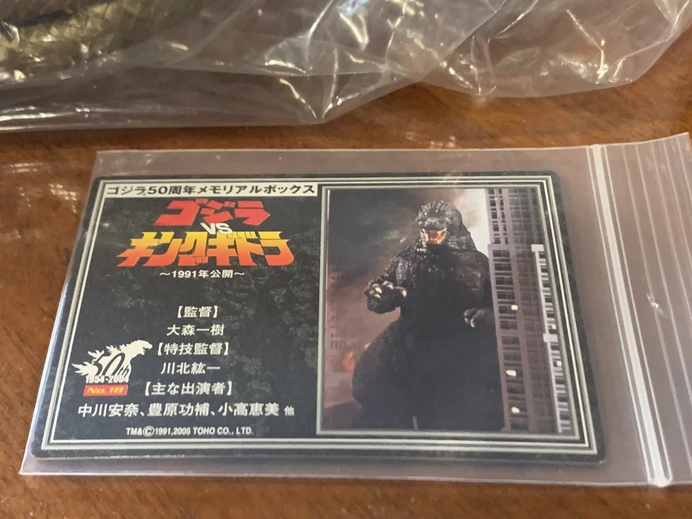 Hi today you are buying a beautiful King Ghidorah 50th Anniversary Memorial Box Soft Vinyl Bandai Movie Monster Series Figure First Generation with original card The figure is in beautiful shape These are getting harder to find in this condition Great item for the collection Shipping and insurance is 10 dollars in the USA I’m a USA seller International bidders are welcome International shipping is done by eBay only no exceptions I sell many Godzilla items plus military models old HO race cars one of kind item cds dvds train cars Albums etc Thanks for looking Eric86