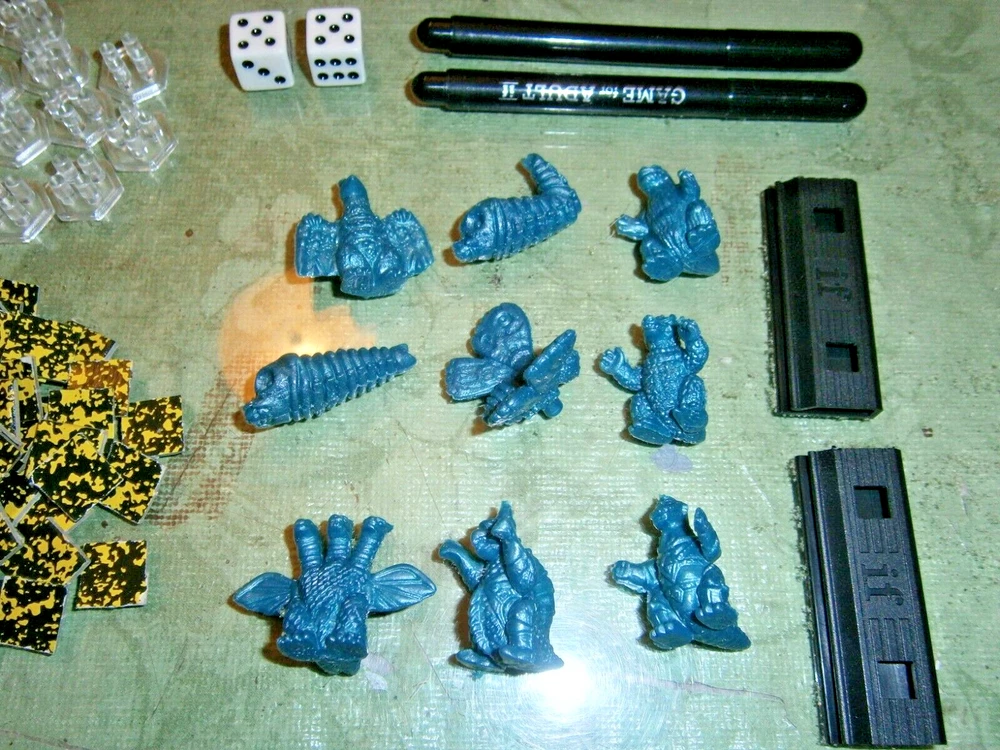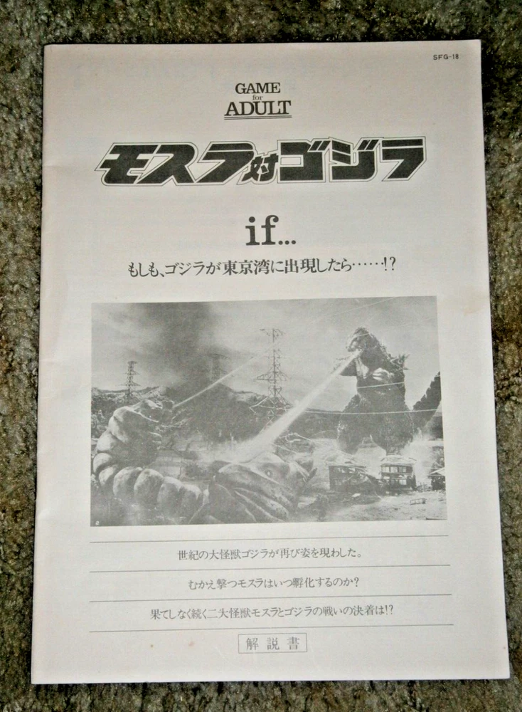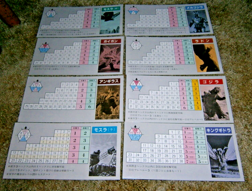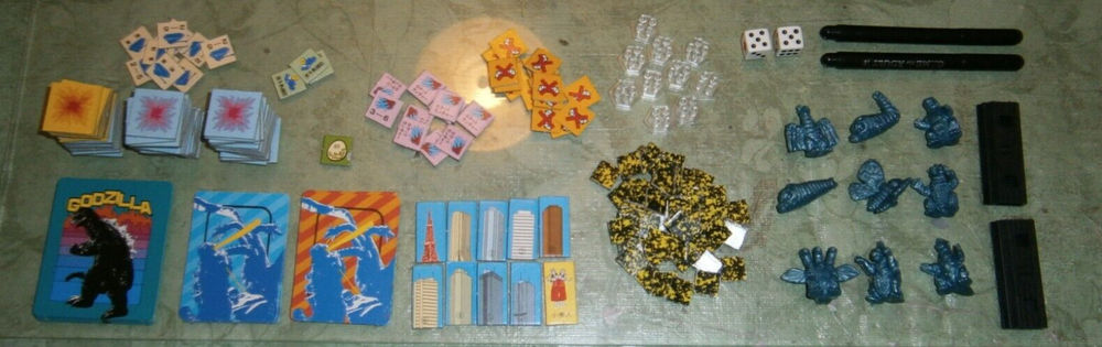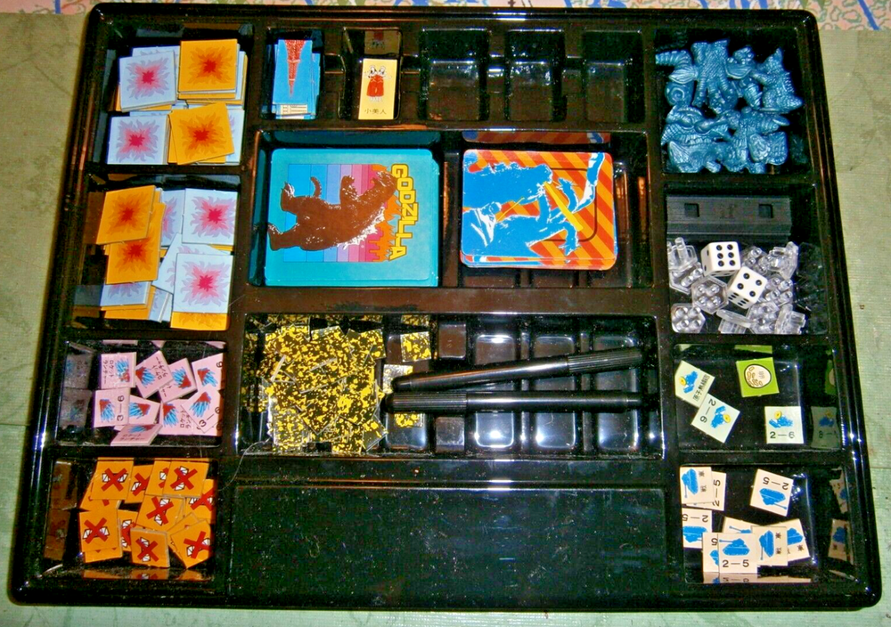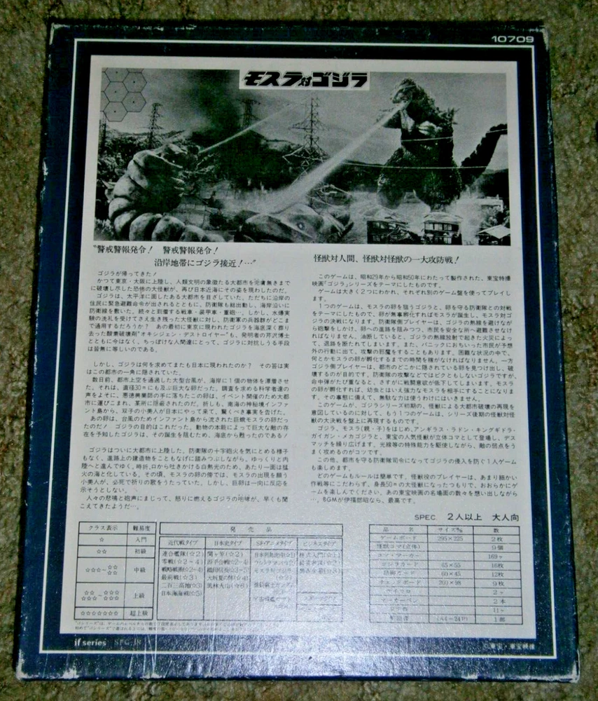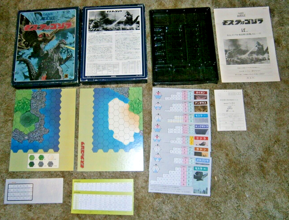 Greetings, Offered is Mothra versus Godzilla by Bandai. The game has been checked and it is only missing a single clear stand. With that said, there are 10 other stands in the set. All other components have been counted and accounted for. The game comes with a two-part, two-sided board, which has no writing on it, front or backside. Cards, monster check boards, turn chart and CRT's are good with no writing on them or torn parts. The plastic monster models are all good. Counters are in good shape. The box has shelf wear, including scrapes and chips to the edges and corners, but no broken corners. The rulebook is in good shape with no writing on it or torn pages, but it is in Japanese. I will provide an English translation of the rules. Shipping is $24.00 and applicable sales tax will be added. Look at the photos and ask any questions before you buy. Check out my other items. I will combine the shipping charges, just be sure to request this prior to checking out.