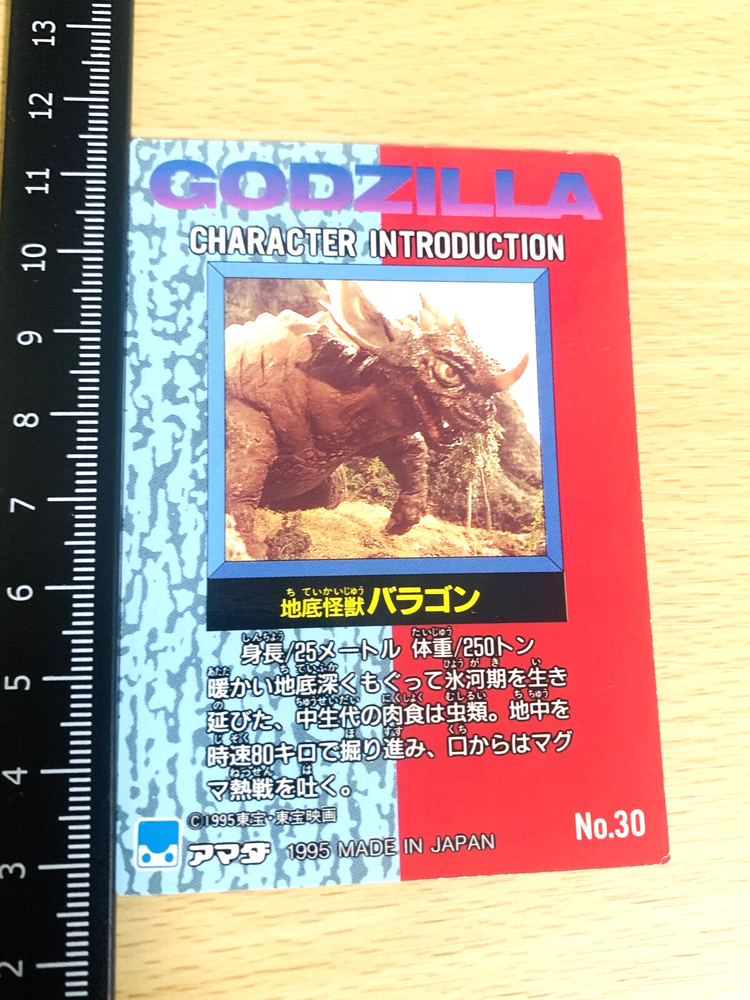 Baragon 1995 Godzilla Card No.30 TOHO Japan E-60 Collectible