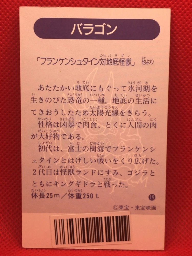 Vintage TOHO Baragon Godzilla 4-inch Barcode Battler rare No.19 card