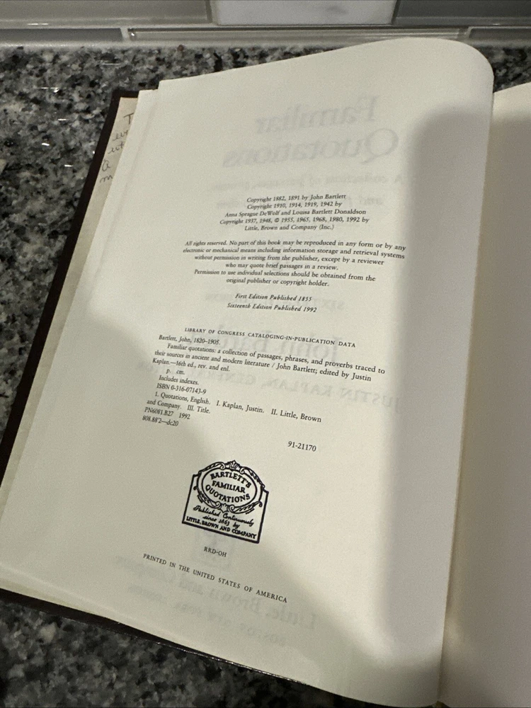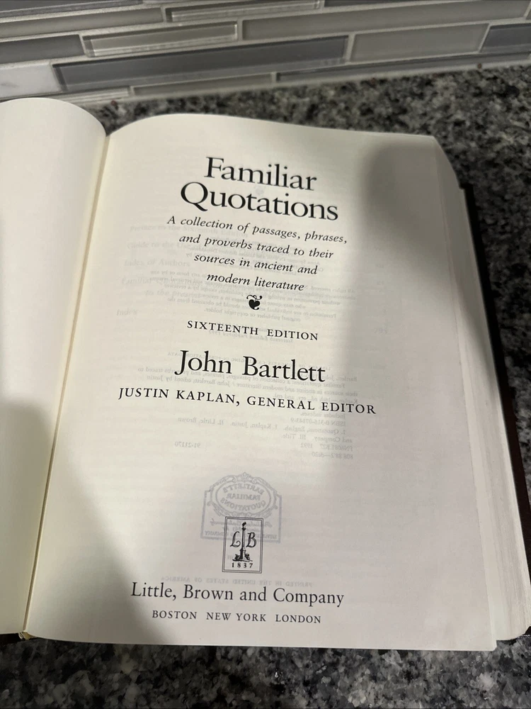 This hardcover edition of Bartlett's Familiar Quotations is a fantastic addition to any book lover's collection! The XL size makes it perfect for a coffee table, and the clean, unread pages are in excellent condition with only minor wear. Sourced from a pet- and smoke-free environment, it’s a treasure trove of timeless quotes from diverse authors and subjects. A must-have for anyone who appreciates literature and wisdom!