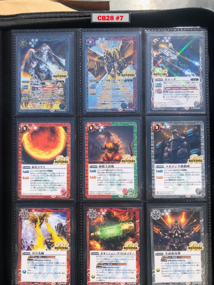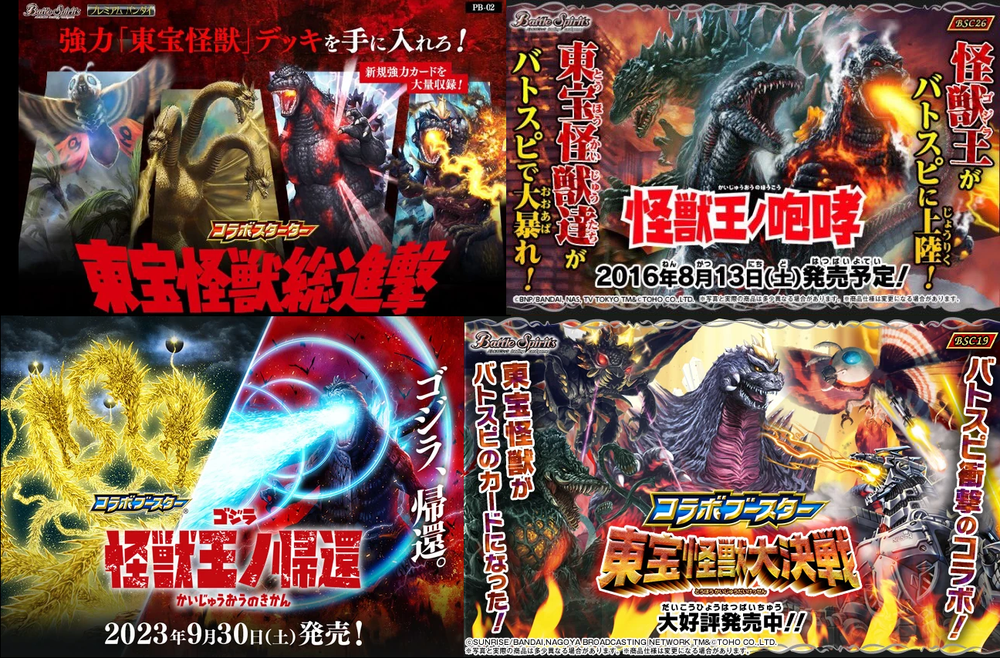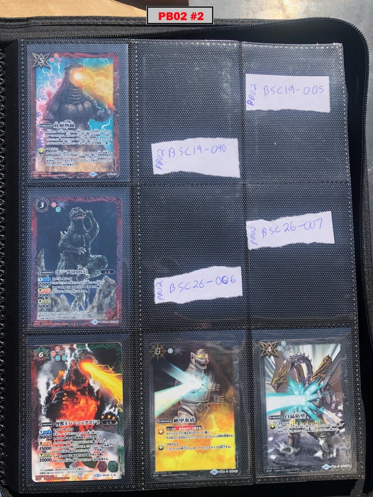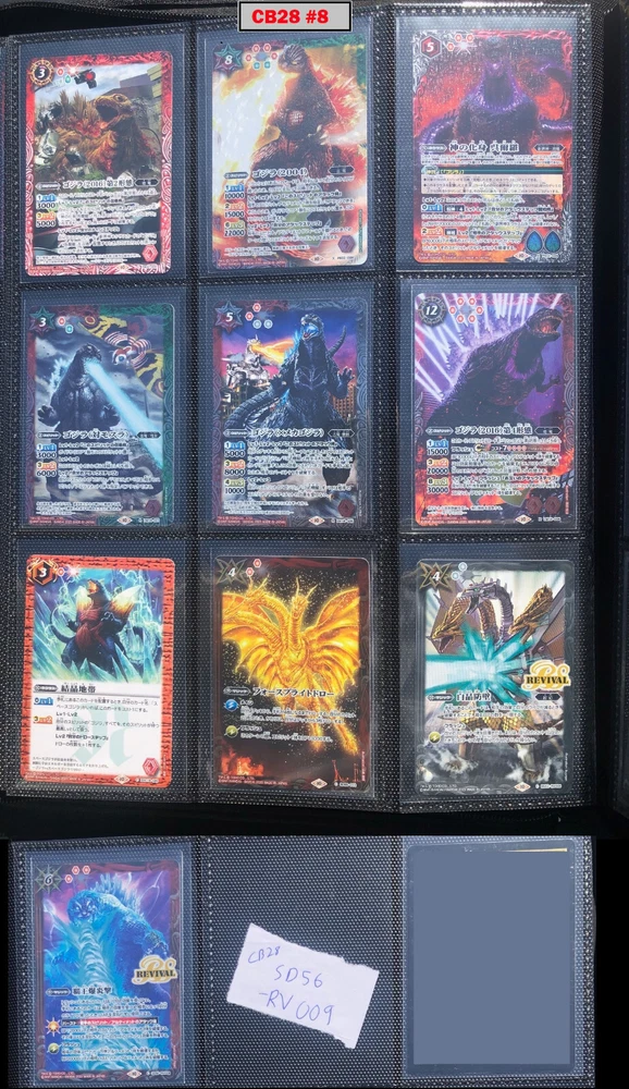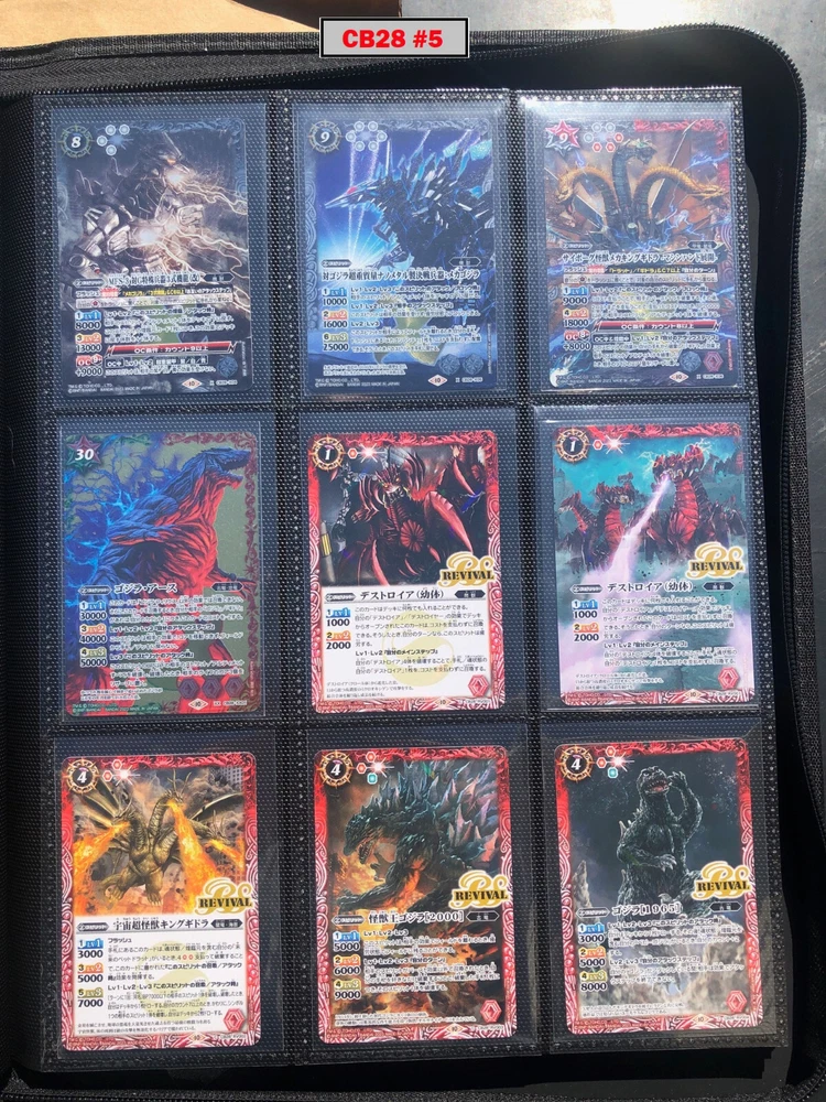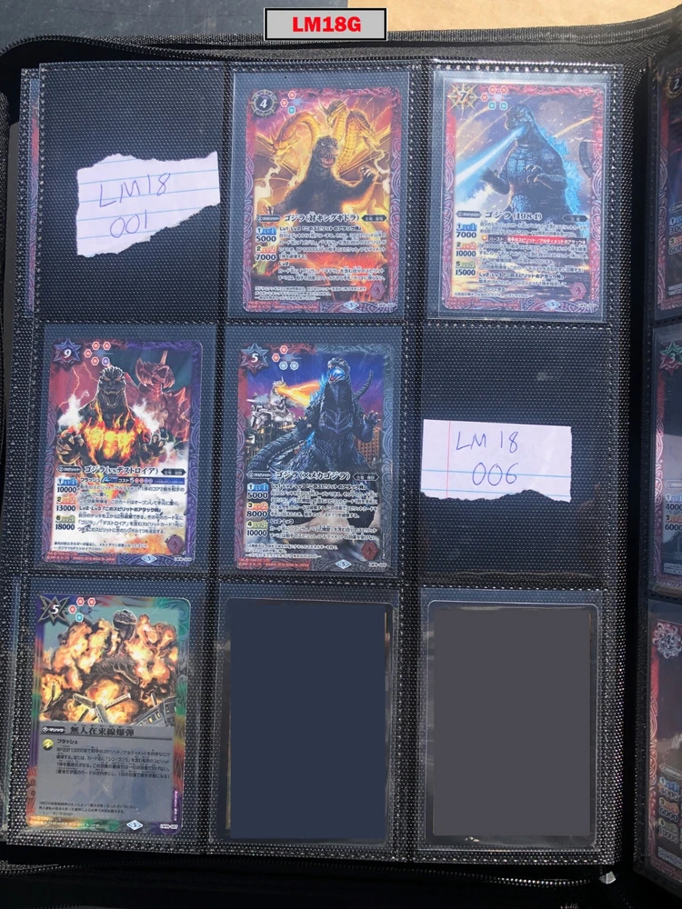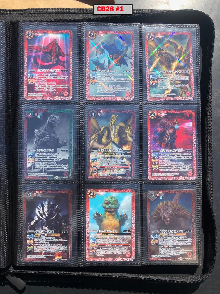 This is a collection of amazing Battle Spirits Japanese Godzilla cards from all 5 Godzilla Japan-only releases. The original set: BSC19 - Toho Kaiju's Great Battle released in 2015. The Kaiju included are from the original Toho Godzilla movies through Godzilla: Final Wars and the Rebirth of Motha trilogy. The follow up: BSC26 - Roar of the King of Kaiju released in 2016. The Kaiju in this release are from the Toho Godzilla films through Shin Godzilla, War of the Gargantua, Manango, Orochi and The Mysterians. A small set within a set: LM18G - Kaiju King Premium Card Set released 2018. This small set is 7 Godzilla cards. The fourth set: PB02 - Destroy All Toho Kaiju released 2019. This small set includes Kaiju from the Toho Godzilla films through Shin Godzilla. The final, most recent and largest by far: CB28 - Godzilla - Return of the Kaiju King released 2023. The Kaiju in this release are from the Toho Godzilla films through Shin Godzilla and the Netflix shows Godzilla: Singularity Point and the Anime Trilogy that started with Godzilla: Planet of the Monsters. This collection is nearly complete, including 200 of 213 cards in total. All the cards are in near-Mint condition. Its the perfect addition to any Godzilla fans collection. Free US Shipping Below is a summary of what is included in each set and below that is a detailed breakdown of what's included: Set Category Included Set Total CB28 Collaboration Booster: Godzilla - Return of the Kaiju King 73 74 BSC19 Collaboration Booster: Toho Kaiju's Great Battle 53 57 BSC26 Collaboration Booster: Roar of the King of Kaiju 56 57 PB02 Collaboration Starter: Destroy All Toho Kaiju 13 18 LM18G Battle Spirits Kaiju King Premium Card Set 5 7 BSC19 - Collaboration Booster: Toho Kaiju's Great Battle (Released 2015) The set has a total of 57 New cards (18 Commons, 15 Uncommons, 12 Rares, 7 Master Rares, and 5 X-Rares.) Included Card # Name Type Rarity Yes BSC19-001 Destoroyah (Juvenile Form) Standard Common Yes BSC19-002 Ebirah [2004] Standard Rare Yes BSC19-003 Minilla [2004] Standard Common Yes BSC19-004 Anguirus [2004] Standard Rare Yes BSC19-005 Little Godzilla Standard Common Yes BSC19-006 Baragon Standard Common Yes BSC19-007 Dorat Standard Common Yes BSC19-008 Rodan [2004] Standard Uncommon Yes BSC19-009 Monster X Standard Uncommon Yes BSC19-010 Gigan [2004] Standard Uncommon Yes BSC19-011 Godzilla Junior Standard Common Yes BSC19-012 Destoroyah (Aggregate Form) Standard Uncommon Yes BSC19-013 Fire Rodan Standard Master Rare Yes BSC19-014 Thousand Year Dragon King Ghidorah Standard Rare Yes BSC19-015 Keizer Ghidorah Standard Master Rare Yes BSC19-016 Orga Standard Master Rare Yes BSC19-017 Fairy Mothra Standard Common Yes BSC19-018 Kamacuras [2004] Standard Common Yes BSC19-019 Mothra (Larva Form) [1992] Standard Common Yes BSC19-020 King Caesar [2004] Standard Common MISSING BSC19-021 Megaguirus Standard Master Rare Yes BSC19-022 Biollante (Flower Beast Form) Standard Rare Yes BSC19-023 Mothra Standard Uncommon Yes BSC19-024 Biollante (Plant Beast Form) Standard Master Rare Yes BSC19-025 Armor Mothra Standard Master Rare Yes BSC19-026 Battra (Larva Form) Standard Common Yes BSC19-027 Battra Standard Master Rare Yes BSC19-028 Land Moguera Standard Common Yes BSC19-029 Star Falcon Standard Common Yes BSC19-030 Super X3 Standard Uncommon Yes BSC19-031 MOGUERA Standard Common Yes BSC19-032 MechaGodzilla [1974] Standard Common Yes BSC19-033 Jet Jaguar [1973] Standard Uncommon Yes BSC19-034 New Gotengo Standard Rare Yes BSC19-035 MechaGodzilla [1993] Standard Rare Yes BSC19-036 Modified Gigan [2004] Standard Uncommon Yes BSC19-037 Type-3 Kiryu Standard Master Rare Yes BSC19-038 Mecha-King Ghidorah Standard Rare Yes BSC19-039 Garuda Standard Common MISSING BSC19-040 The Crystal Zone Standard Common Yes BSC19-041 Planet Gorath Standard Uncommon Yes BSC19-042 The Time of Awakening Standard Uncommon Yes BSC19-043 The Infant Island Standard Common MISSING BSC19-044 The MechaGodzilla Hangar Standard Uncommon Yes BSC19-045 The G Summit Standard Common Yes BSC19-046 Gravity Beam Standard Uncommon Yes BSC19-047 Oxygen Destroyer Standard Rare Yes BSC19-048 Mothra's Emergence Standard Rare Yes BSC19-049 Mothra's Song Standard Uncommon MISSING BSC19-050 Shintoshin Collapse Standard Uncommon Yes BSC19-051 Type-3 Absolute Zero Cannon Standard Rare Yes BSC19-052 All Arms Attack Standard Rare Yes BSC19-X01 King Ghidorah [1991] Standard X-Rare Yes BSC19-X02 Space Godzilla Standard X-Rare Yes BSC19-X03 Destoroyah (Final Form) Standard X-Rare Yes BSC19-X04 Mothra [1992] Standard X-Rare Yes BSC19-X05 Modified Type-3 Kiryu Standard X-Rare BSC26 - Collaboration Booster: Roar of the King of Kaiju (Released 2016) The set has a total of 54 New + 3 Reprint cards (31 Commons, 2 Uncommons, 12 Rares, 7 Master Rares, and 5 X-Rares.) Included Card # Name Type Rarity Yes BSC26-001 The SeaDragon Manda Standard Common Yes BSC26-002 Shin-Godzilla (First Form) Standard Common Yes BSC26-003 Godzilla [1954] Standard Common MISSING BSC26-004 Godzilla [1965] Standard Rare Yes BSC26-005 Shin-Godzilla (Second Form) Standard Common Yes BSC26-006 The God of Destruction Space Godzilla Standard Common Yes BSC26-007 Godzilla [1971] Standard Common Yes BSC26-008 The Sky Giant Kaiju Rodan Standard Common Yes BSC26-009 The Space Super Kaiju King Ghidorah Standard Common Yes BSC26-010 The Kaiju King Godzilla [2000] Standard Rare Yes BSC26-011 Destoroyah (Flying Form) Standard Common Yes BSC26-012 Shin-Godzilla (Third Form) Standard Rare Yes BSC26-013 The Demonic Aqua Beast Dagahra Standard Common Yes BSC26-014 The Space Super Demonic Beast Desghidorah Standard Rare Yes BSC26-015 Godzilla [1989] Standard Rare Yes BSC26-016 The Demon King Yamata-no-Orochi Standard Master Rare Yes BSC26-017 The Smog Kaiju Hedorah Standard Rare Yes BSC26-018 The Complete Lifeform Destoroyah Standard Master Rare Yes BSC26-019 The Cyborg Kaiju Gigan Standard Master Rare Yes BSC26-020 Matango Standard Common Yes BSC26-021 
