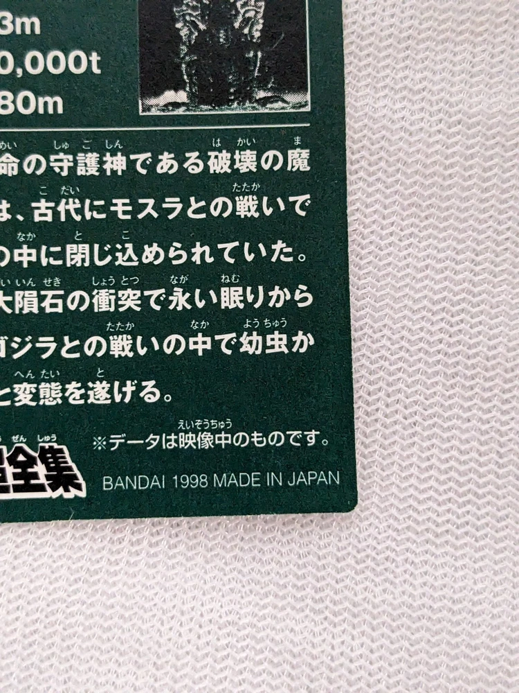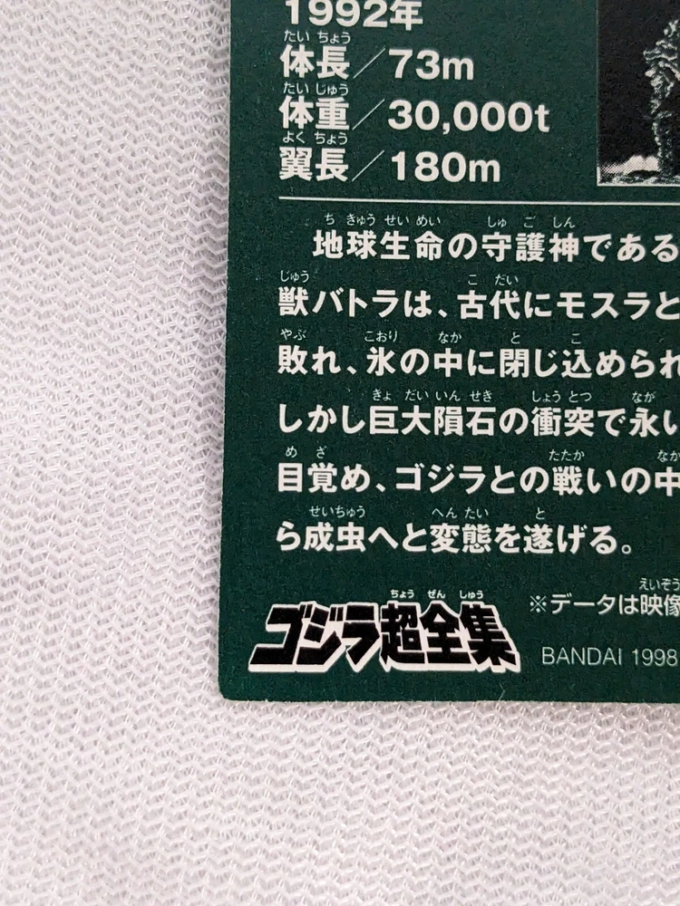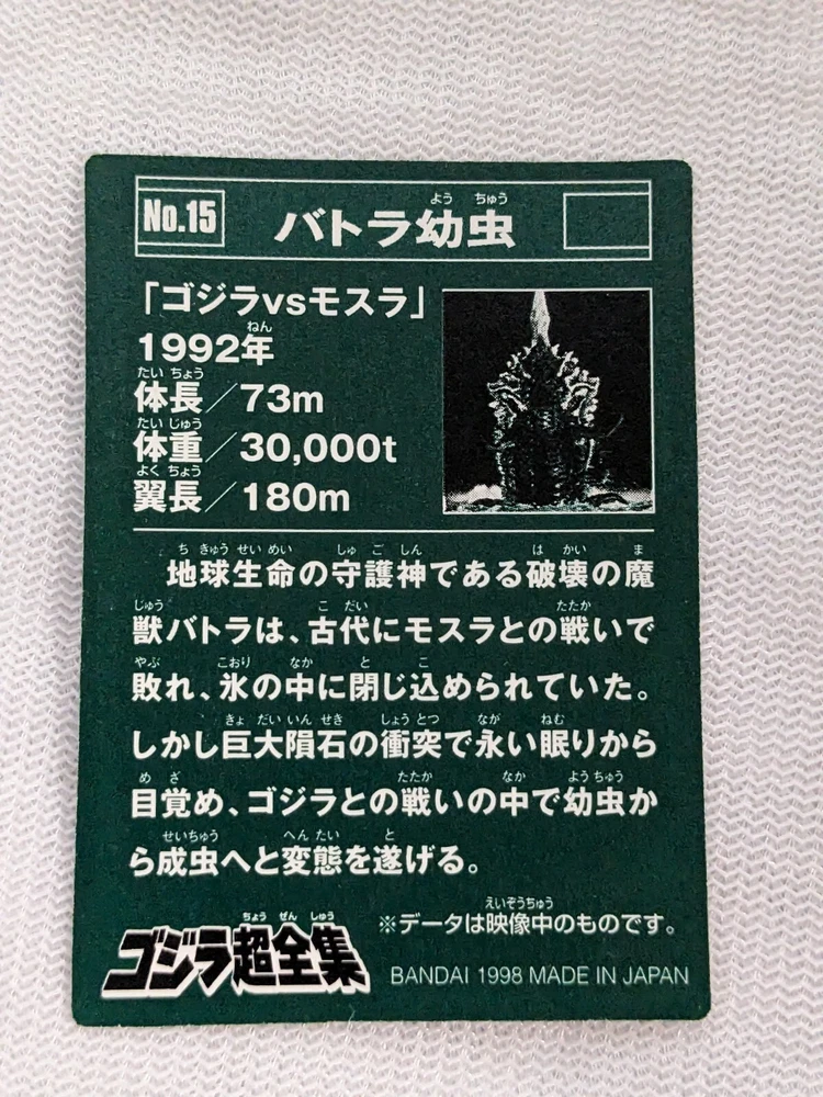 Battra Larva Godzilla Bandai Mini Card 2.8x2.0 No.15 1998 Toho Japan Collectible