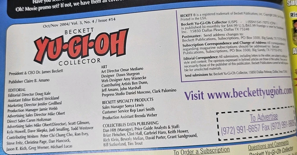 Please examine the photos of the item for its condition before purchase! Dive into the world of Yu-Gi-Oh with the Beckett Publications Inc's Beckett Yu-Gi-Oh magazine, featuring the Dark Paladin card from the October/November 2004 issue. Unofficial and highly sought after by collectors, this bimonthly publication offers a rich blend of content, including games, hobbies, collectibles, and trading card games, with vivid illustrations that bring the excitement of the duel right to your fingertips. Issue #14, Vol. 3, No. 4, comes in English and is produced in the United States, capturing a unique moment in the manga and anime genre's history. Whether you're a seasoned collector or just starting out, this magazine is a treasure trove of information and nostalgia, celebrating the expansive universe of Yu-Gi-Oh.