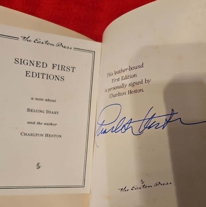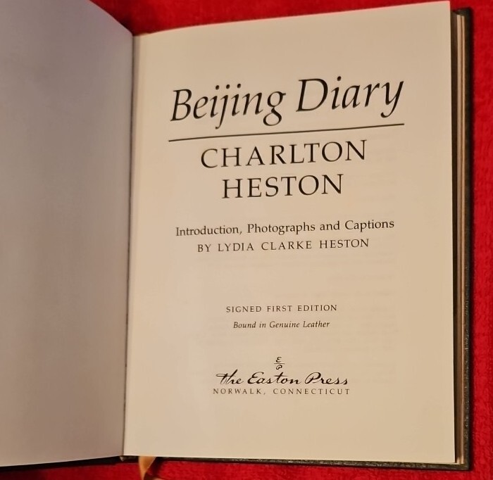 This is a rare and valuable signed 1st edition titled "Beijing Diary" by Charlton Heston. This book is bound in high quality leather and published by Easton Press. The book is in excellent condition. It is a great addition to any book collection, especially for those interested in Charlton Heston's travels in China. The book is written in English and is a biography & autobiography. This item is a must-have for any fan of Charlton Heston and will make a great gift for book collectors. Check my rating and bid with confidence Free s/h within the United States