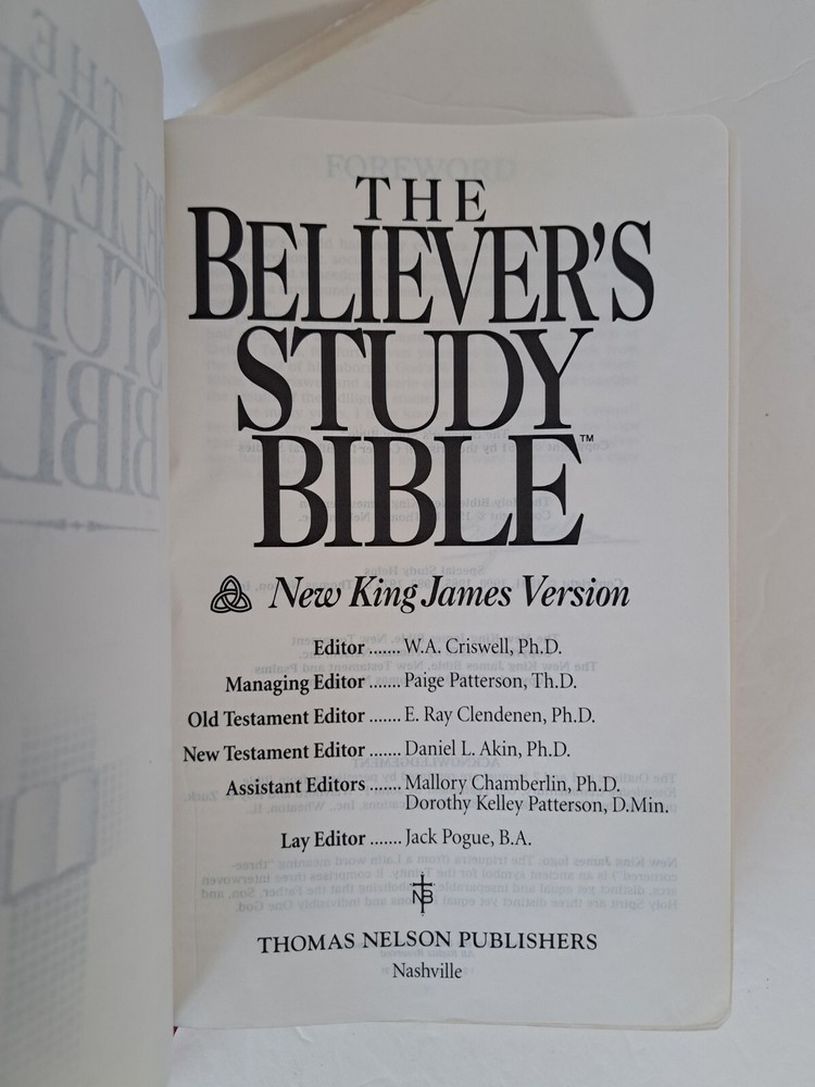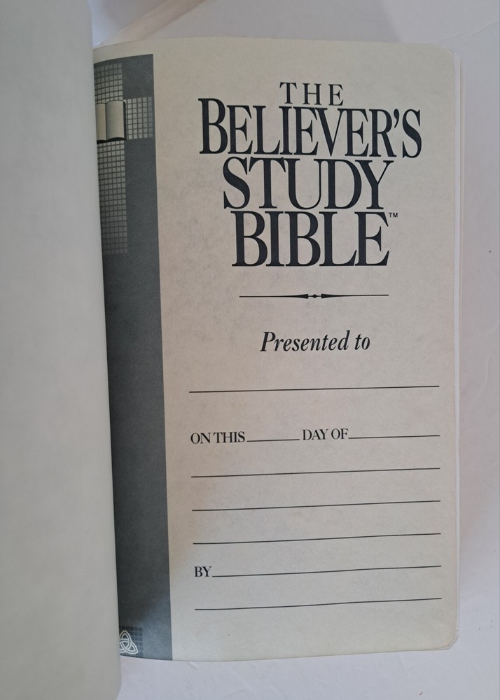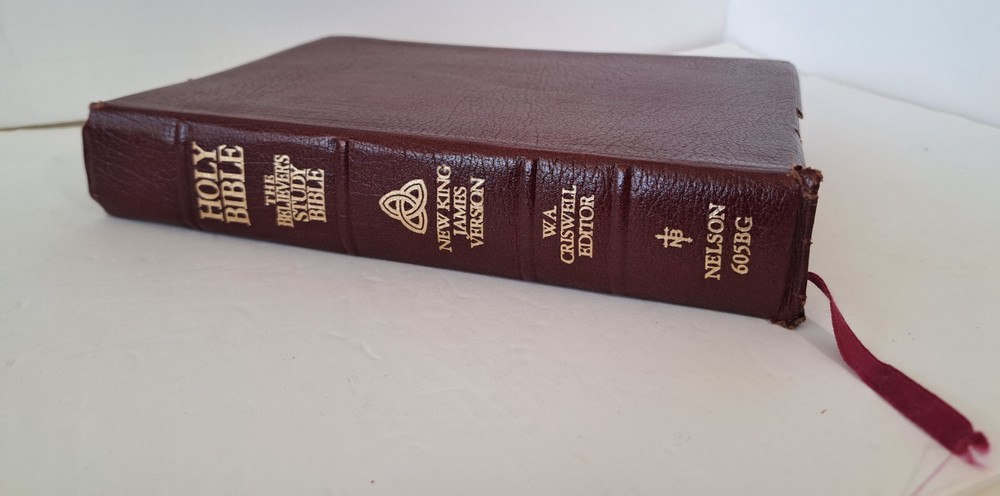 Genuine bonded leather, published by Thomas Nelson Publishes, copyright 1991. The cover is clean with some wear, especially on the edges. The binding is tight. Has highlighting or small notations on 50 or 60 pages. These are not stock photos, the Bible shown on this listing is the Bible you will receive. Any questions, please ask.