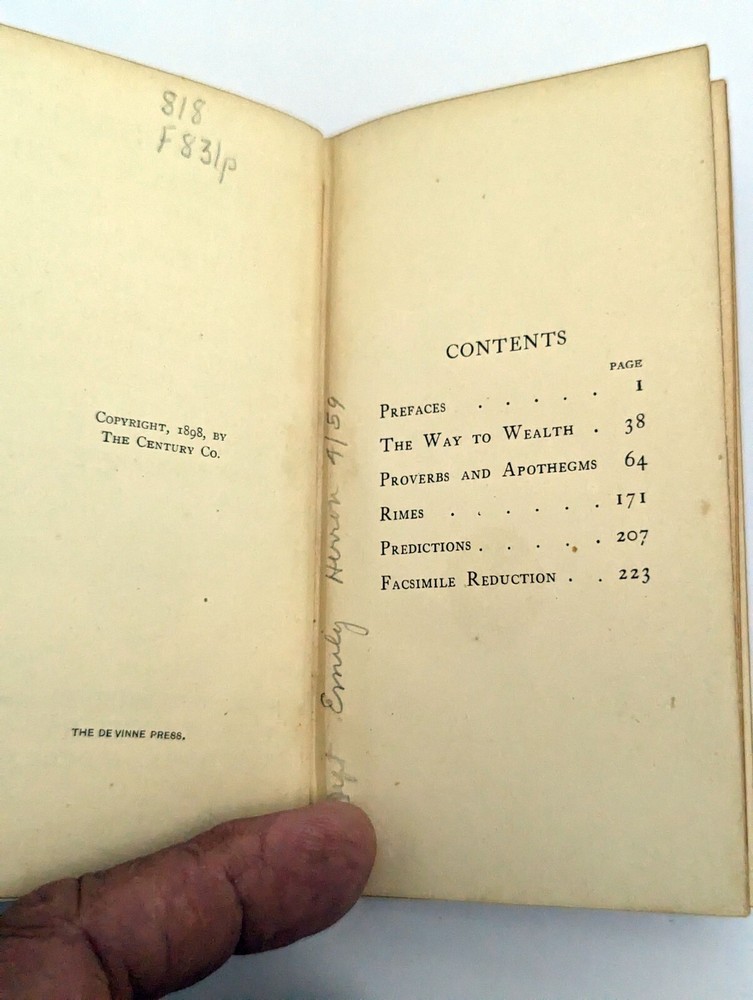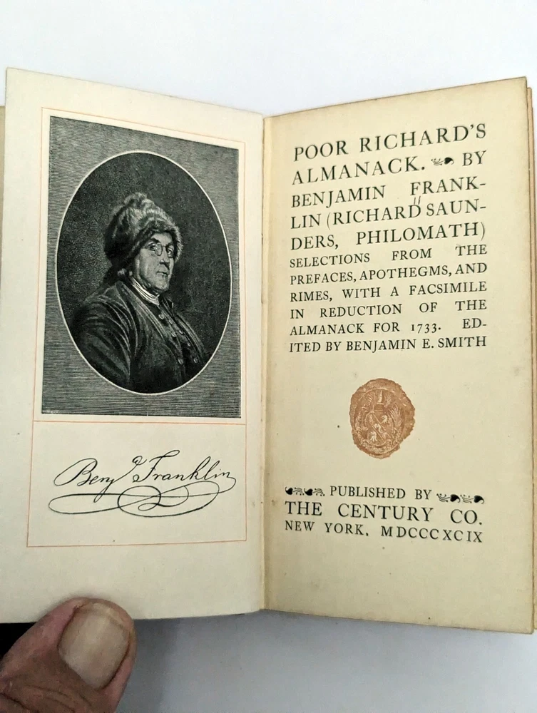 Vintage Good condition POOR RICHARD’S ALMANACK Leather 1898 Edition Antique. Inside page signed with date Aug 28,1915. If you are looking at this you know what this special book is in our history. Lots of interesting things to read in modern times.