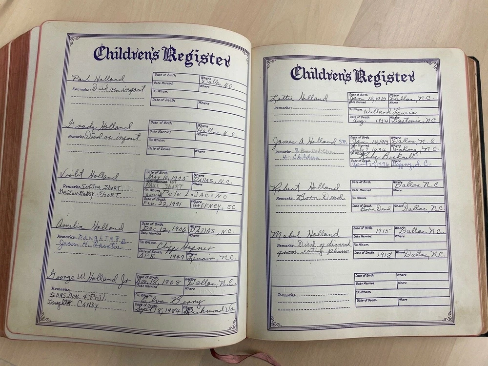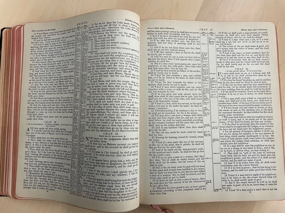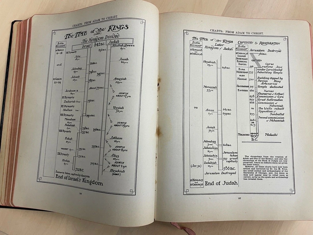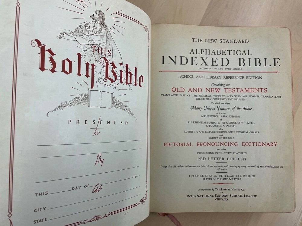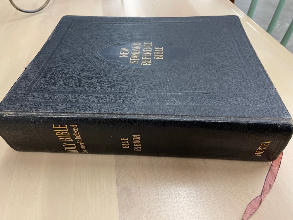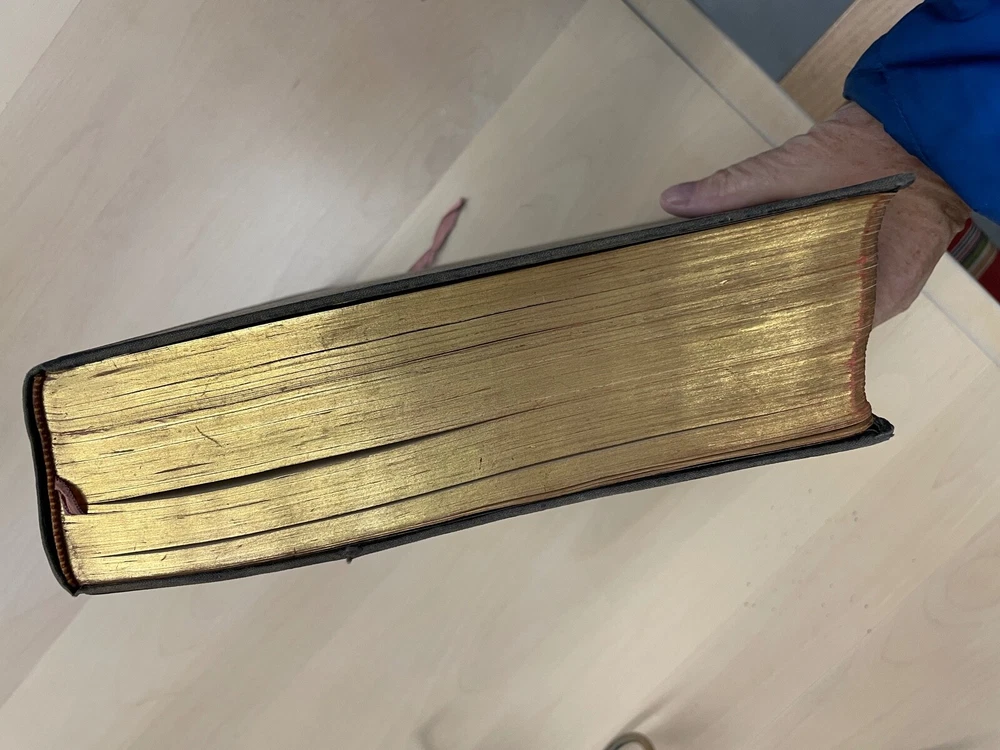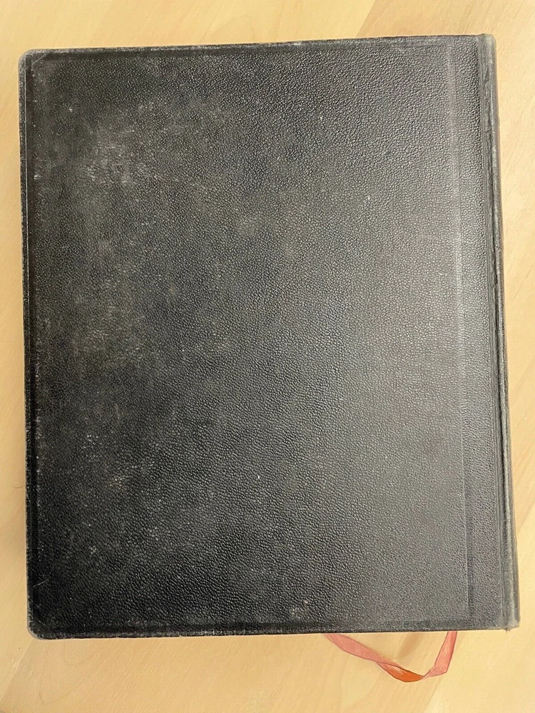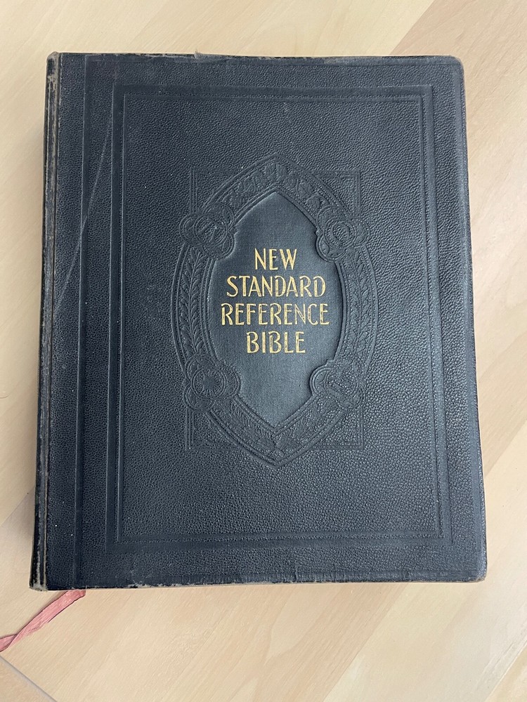 Large format antique Bible. Leather cover and gilt edge. Your purchase benefits Habitat for Humanity.