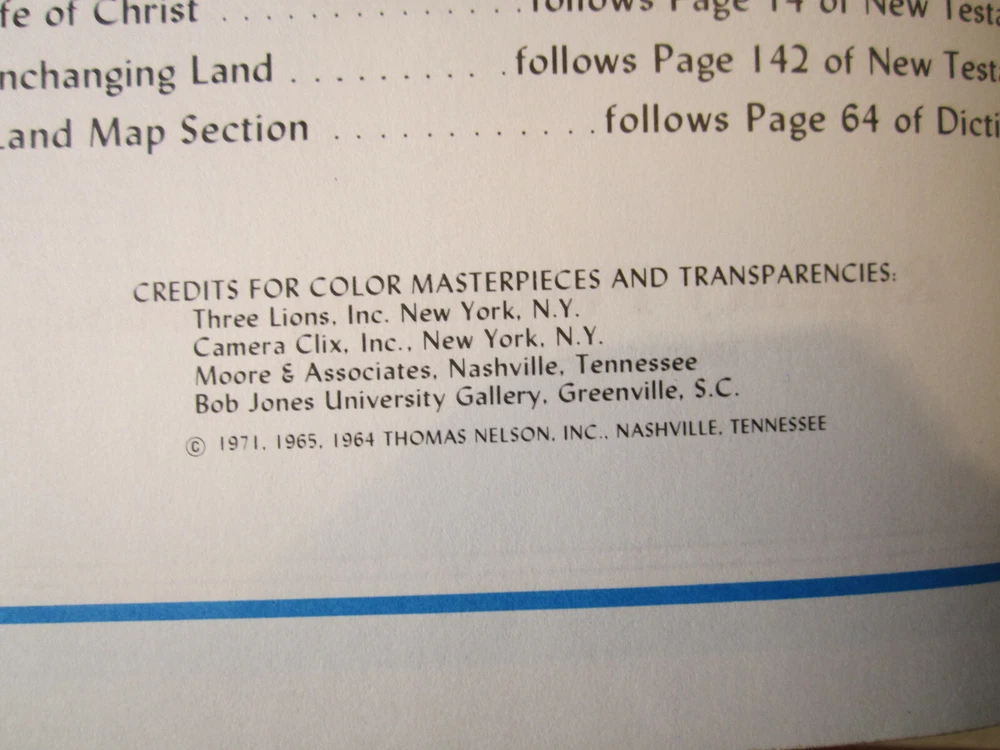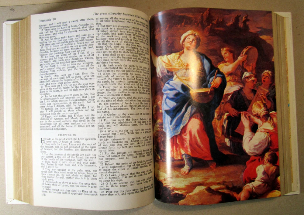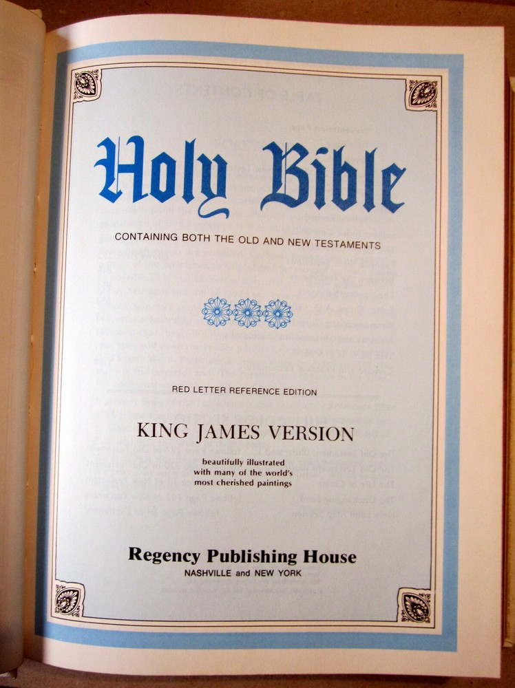 Holy Bible containing both the Old and New Testaments Red Letter Reference Edition King James Version beautifully illustrated with many of the world's most cherished paintings Regency Publishing House Nashville and New York copyright 1971 1965 1964 Thomas Nelson Inc The covers show minimal wear and as you can see in the pics All pgs are attached and are clean, minimal edge wear to the pages. The Family Register is NOT filled in We have put a few pics of the inside of the book for you to check out. ... Pictures really do tell the story. Buy from us, we show you what the book looks like up front. The pictures here in this listing are of the actual book, not a stock photo. If you need more, let me know. It measures 11-1/2" x 9" x 2-1/4" - numbered pages AEG all page edges Gold I will ship out promptly. I will also combine shipping on other items ending within a few days or so of each other, let me know if you are waiting and I will not send off invoices. If you don't want to pay shipping - LOCAL PICKUP is always FREE.