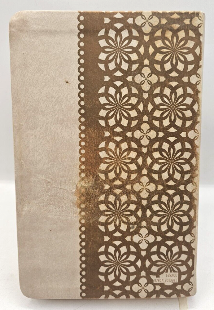 Bible NKJV Giant Print End Of Verse Reference 2006 Thomas Nelson Ivory Gold Condition: Wear on cover edges. No writing within text.