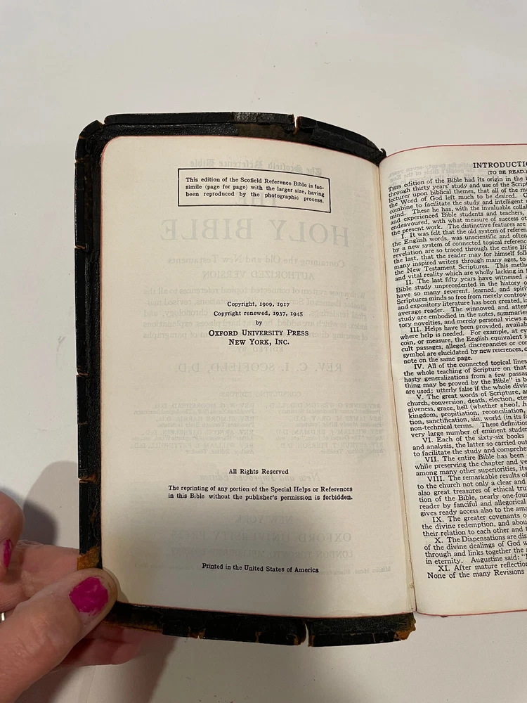 This is a 1945 Scofield Reference Edition Bible. Please read condition description.