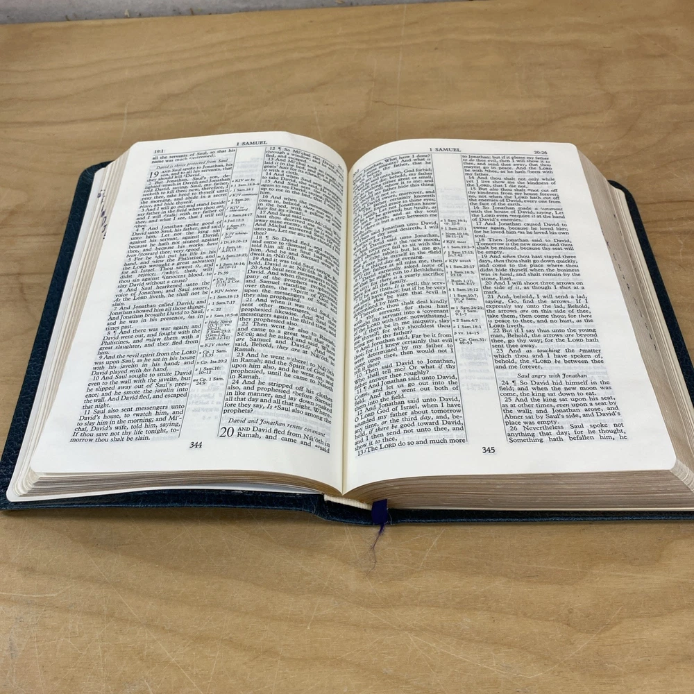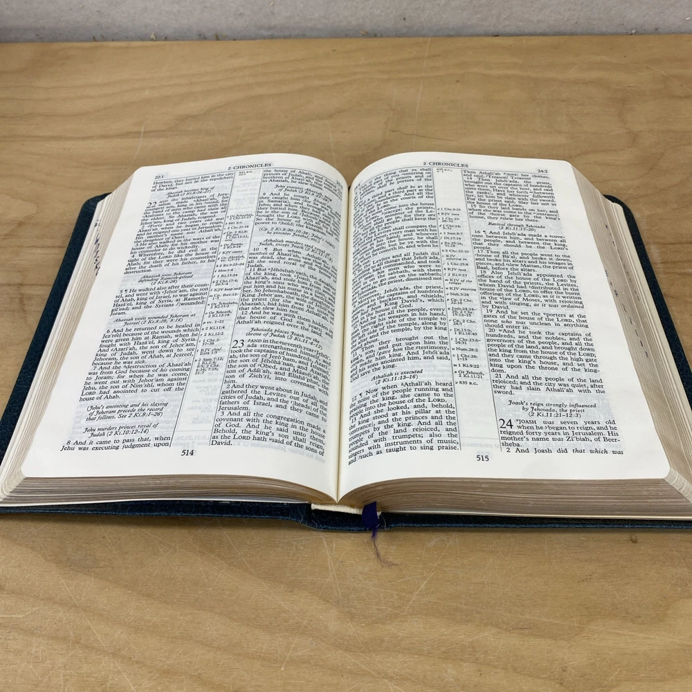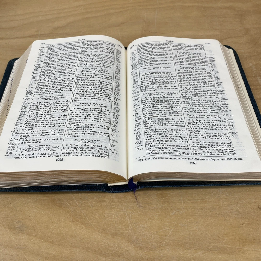 Vintage reference Bible in acceptable condition with some damage to the cover edge. No highlighting or markings observed. Books are index on the edge visible by looking sideways at the page edges.