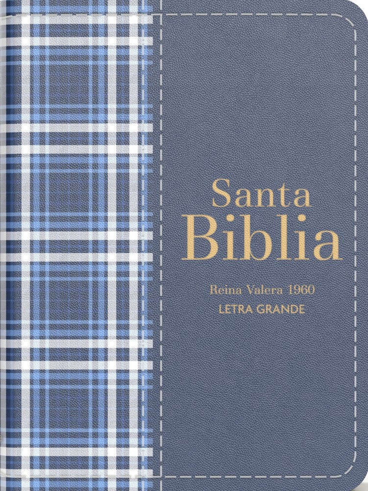 Biblia RVR 1960 Compacta Símil Piel Cuadros Azul Oscuro...