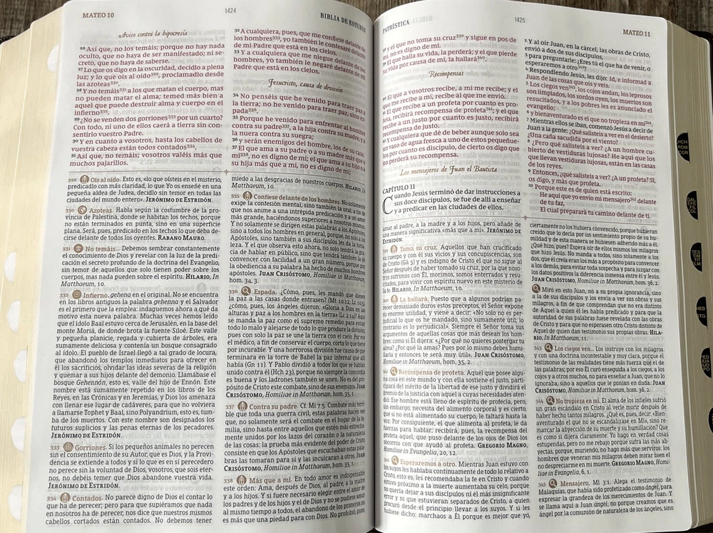 La Biblia de Estudio Patrística coordinada por José María de Rus; cuenta con los principales expertos en las ciencias bíblicas e historia de la iglesia: Iglesia Primitiva y la Patrística o Padres de la Iglesia. Esta Biblia es una garantía de calidad y rigor en un ambicioso proyecto bíblico. Pone al alcance del lector en forma de notas de estudio la esencia de las aportaciones, estudios y reflexiones de los líderes de la Iglesia Primitiva como son Agustín de Hipona, Orígenes, Tertuliano, Justino Mártir, Ambrosio de Milán o Cirilo de Jerusalén, entre otros. La Biblia de Estudio Patrística con Justo L González y Alfonso Ropero como editores principales, es la primera Biblia de estudio que examina las enseñanzas y escritos de forma global, histórica e integral de los principales autores y personajes de esa época tan cercana y fundamental al inicio del cristianismo y del desarrollo y expansión de la Iglesia Primitiva. Enfocada para entender los esfuerzos de interpretación y aplicación bíblica de los primeros líderes de la iglesia, así como para iluminar nuestra responsabilidad en su relevancia actual. Con un enfoque aplicativo que enriquece espiritual y moralmente. Mas de 12.000 notas de estudio clasificadas en 7 tipos: Proféticas, Contextuales, Doctrinales, Teológicas, Devocionales, Filológicas y Exegéticas. La Biblia incluye las palabras de Cristo en rojo, tablas, gráficos y cronologías que ayudan a visualizar el entendimiento del texto, en conjunto con una serie de 50 recursos o estudios sobre pasajes de la Biblia.
